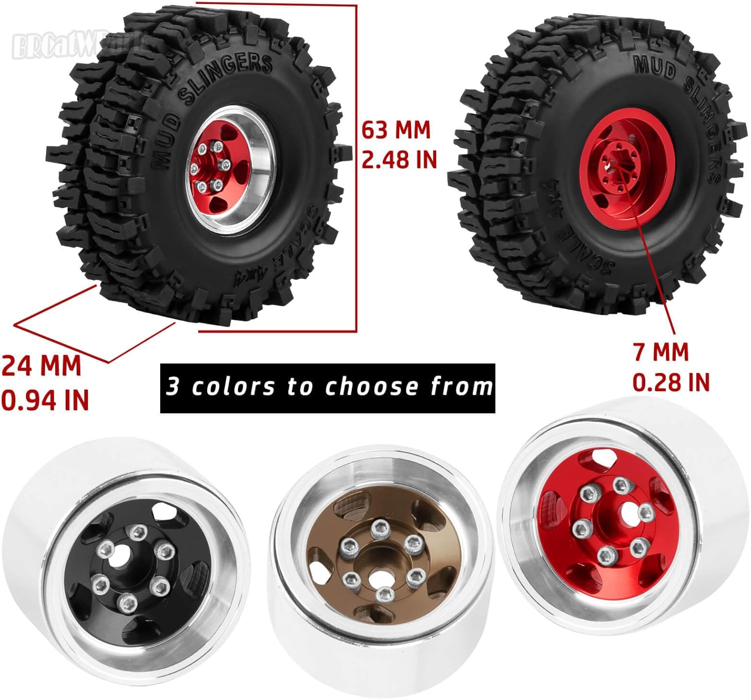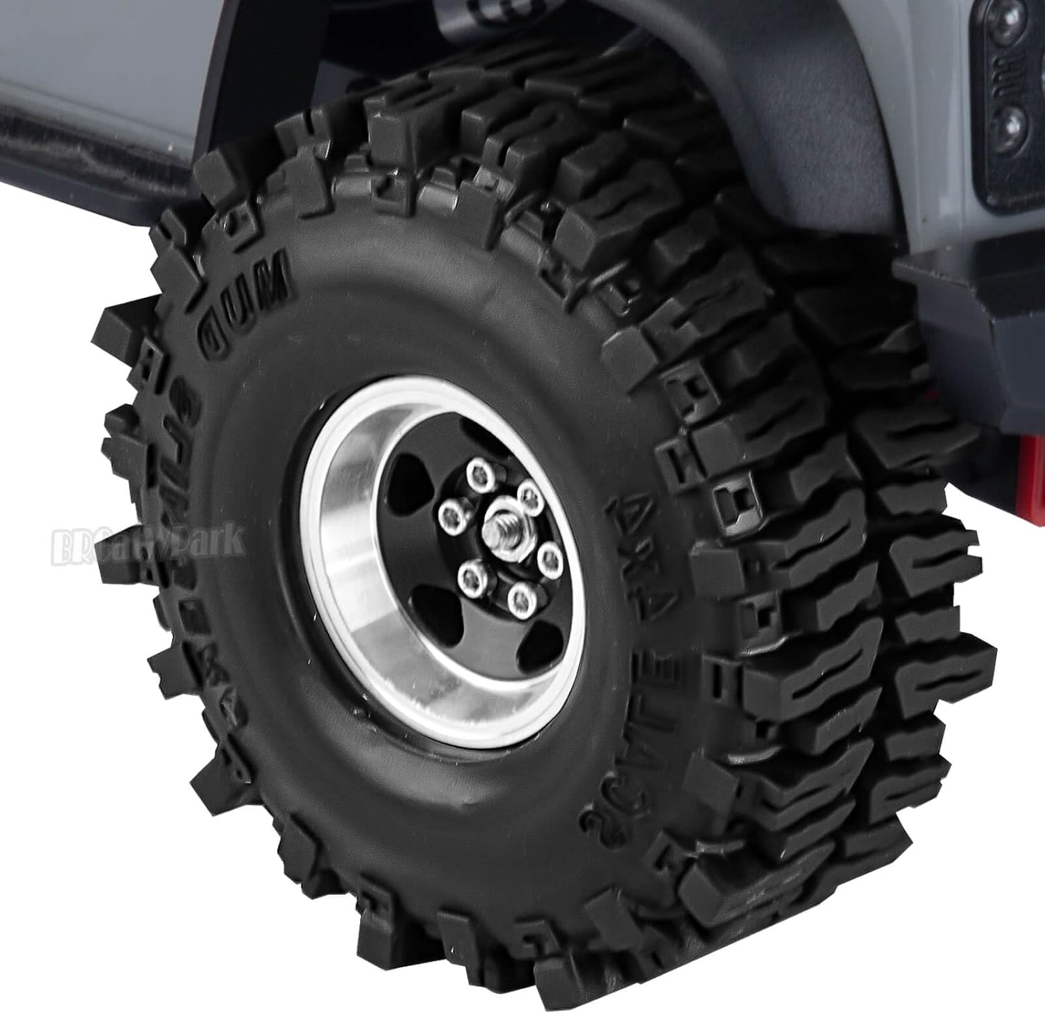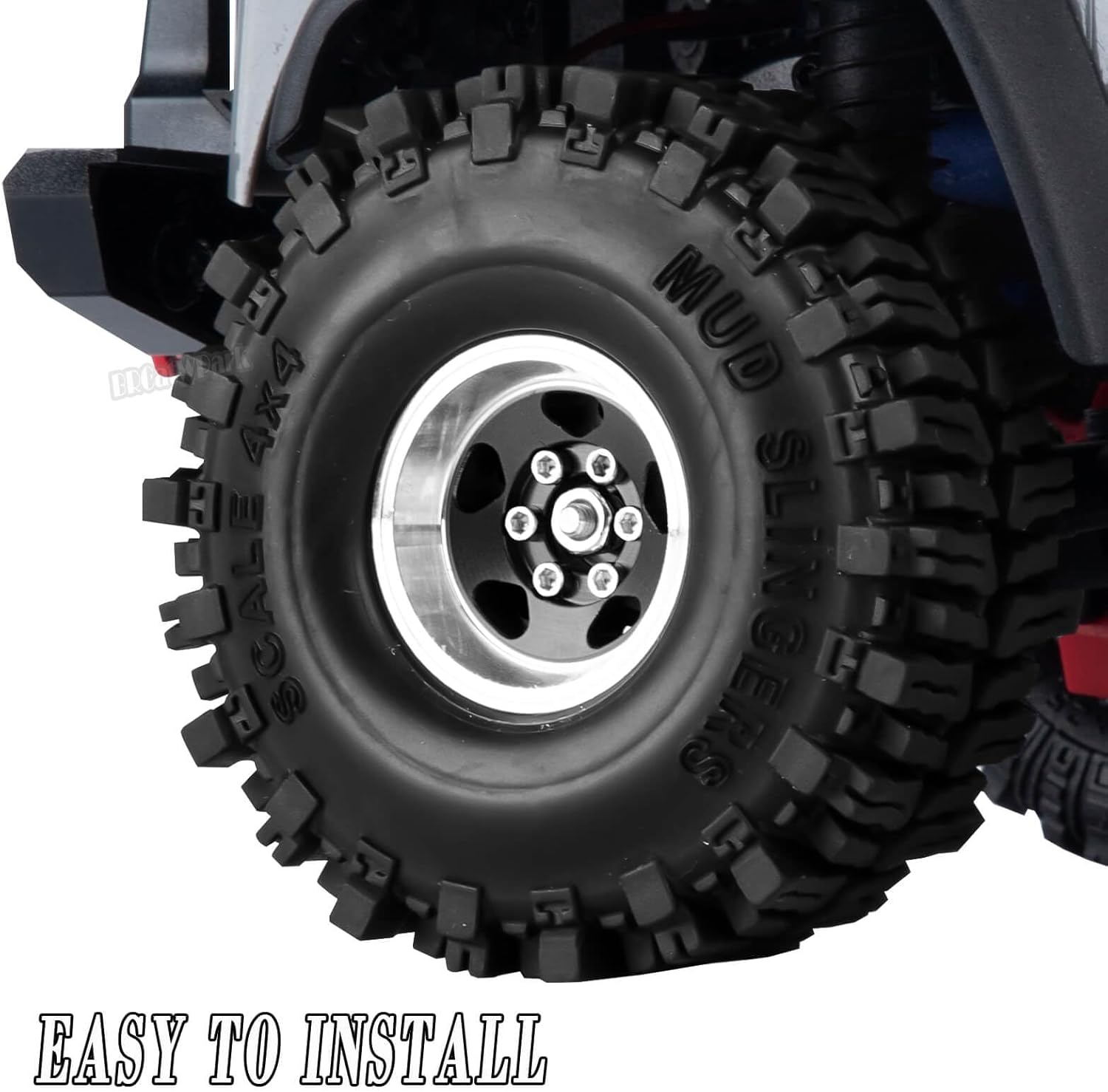 【Fits For】: 4PCS 1.0 In Beadlock Wheels and Tires for 1/18 TRX4M,1/24 SCX24 RC Crawler Car.