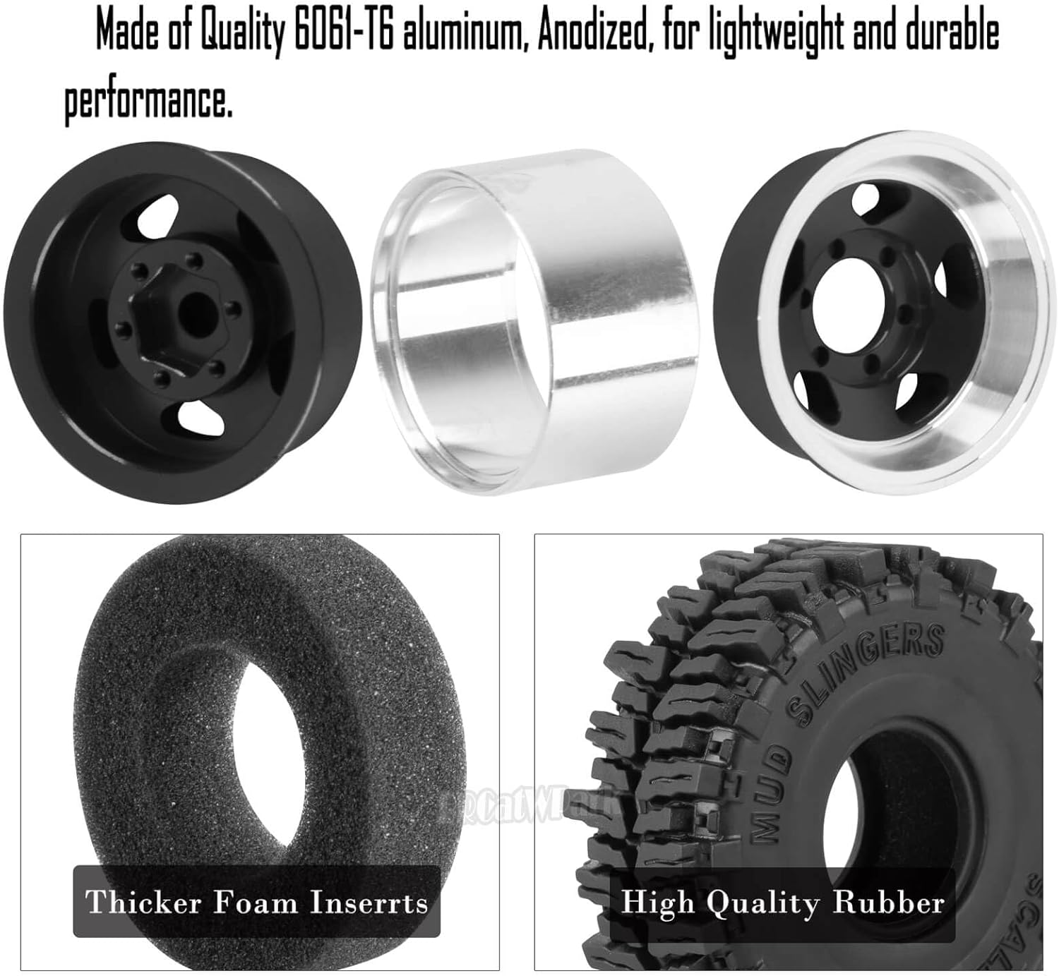 【High-quality Material】:RC 1.0 Beadlock Wheel Rims of 6061 anodized aluminum,precision CNC machined,lightweight and durable,increase the long-lasting durability.