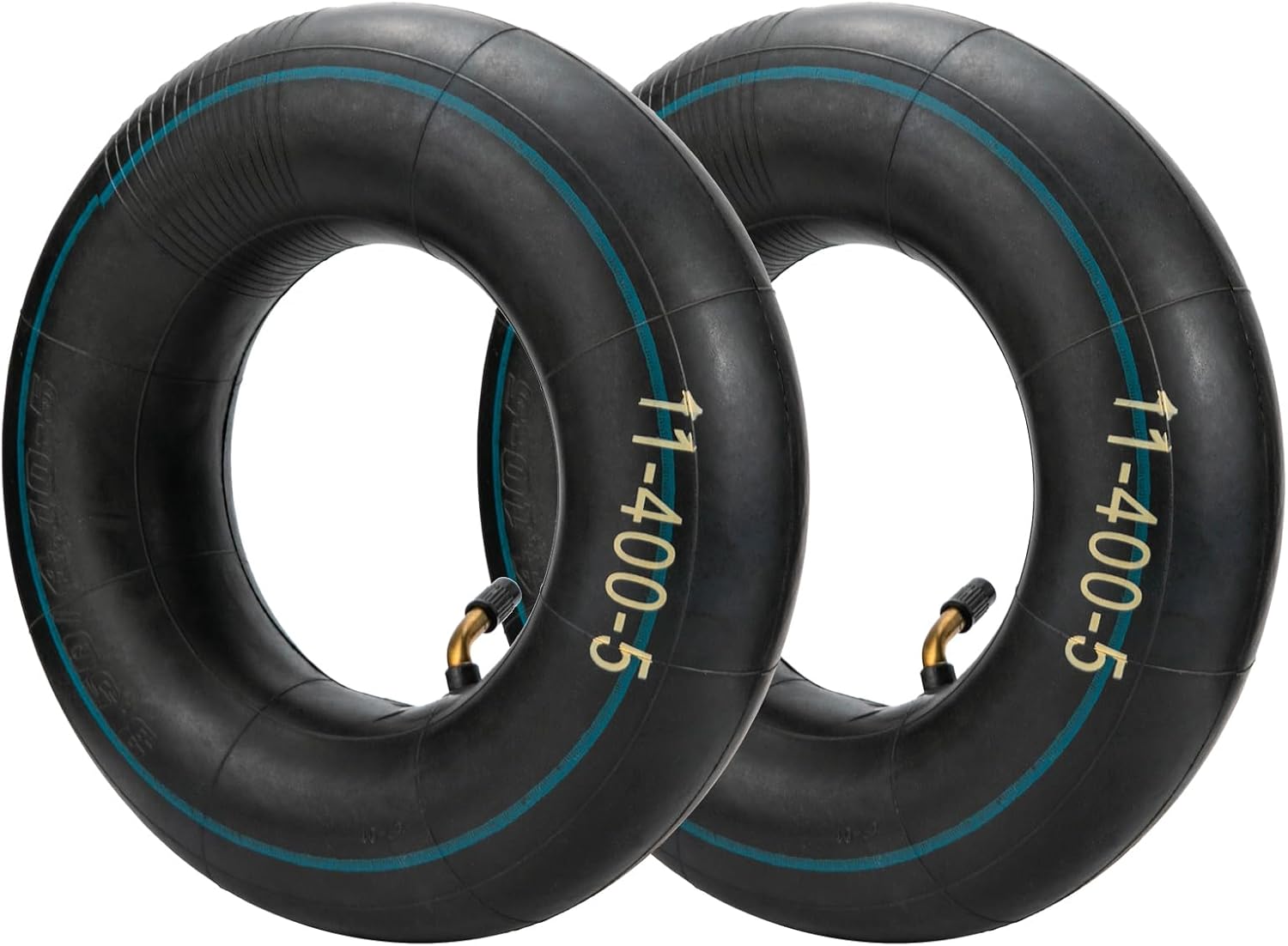 11×4.00-5 11×4.50-5 11×5.00-5 Inner Tubes, 2 Pack Heavy Duty Replacement Tire Inner Tubes with Bent Valve Stem for Wheelbarrows, Lawn Mowers, Hand Trucks, Trailers, Snow blowers, etc
