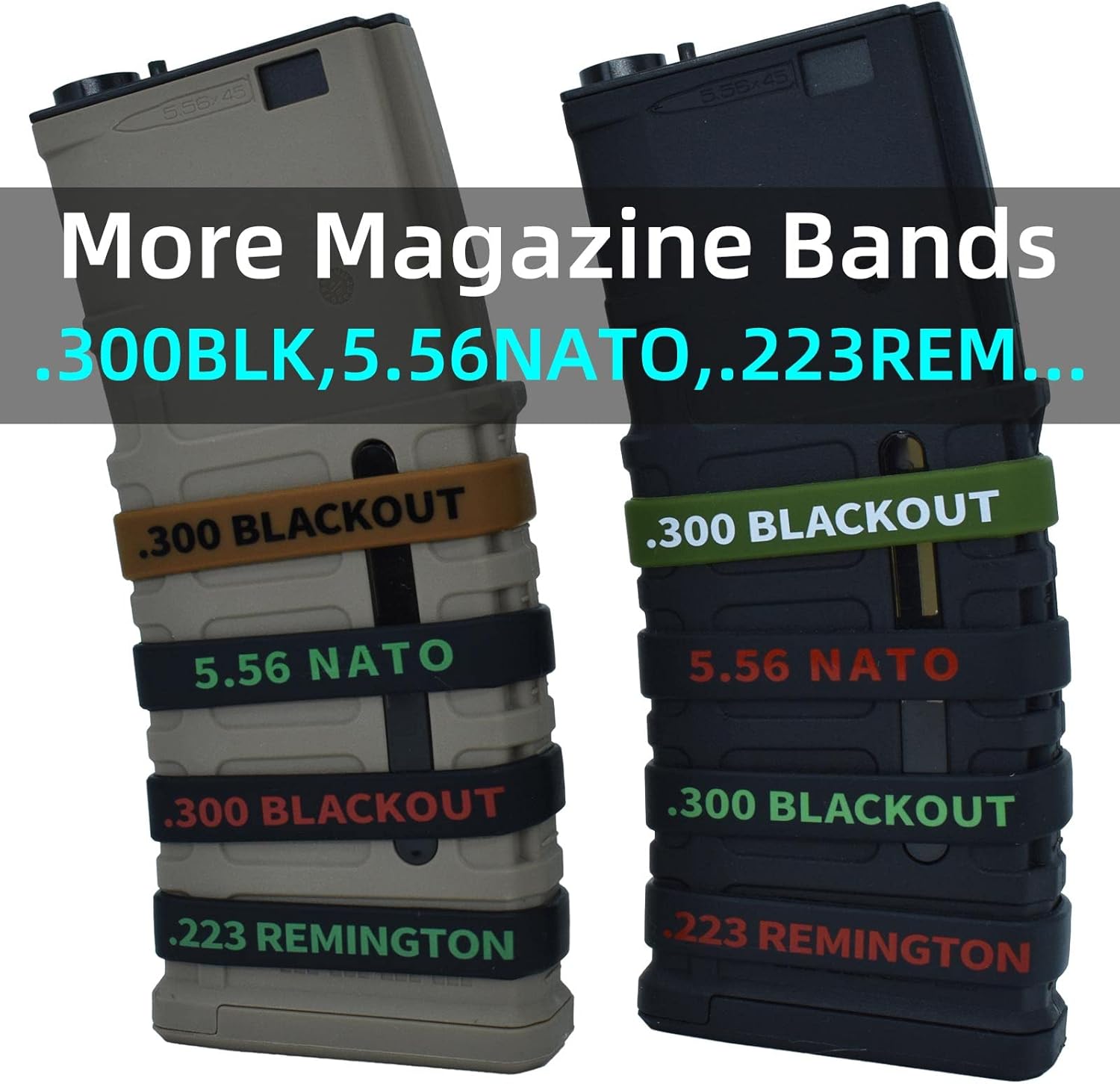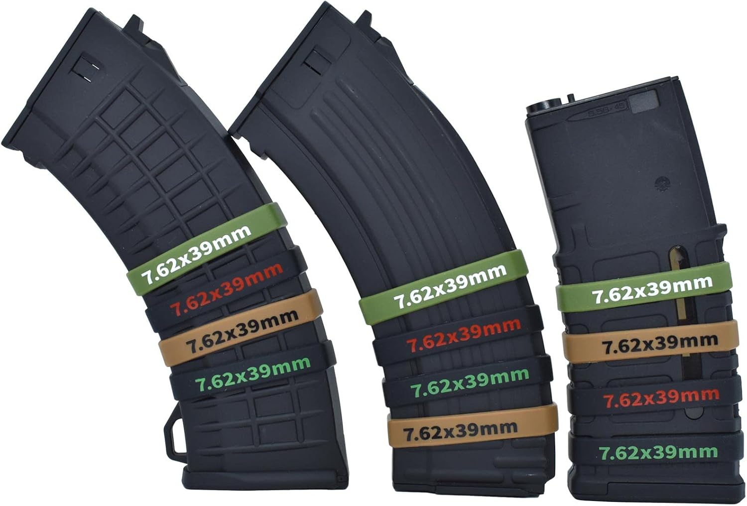 7.62x39mm on both side of the bands,ID the 7.62x39mm magazines,help to quick find the right mags,never pick up wrong mags again.
