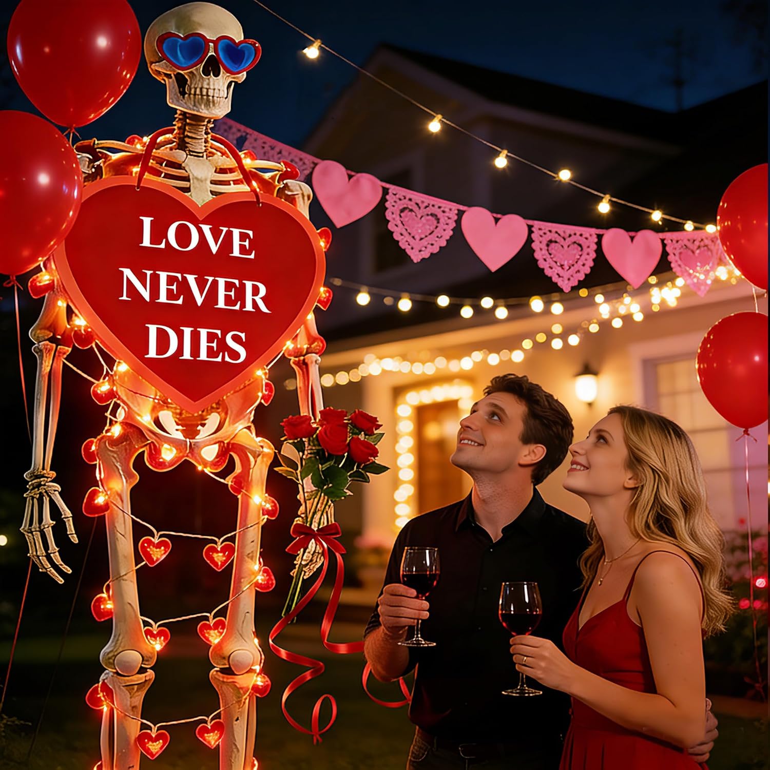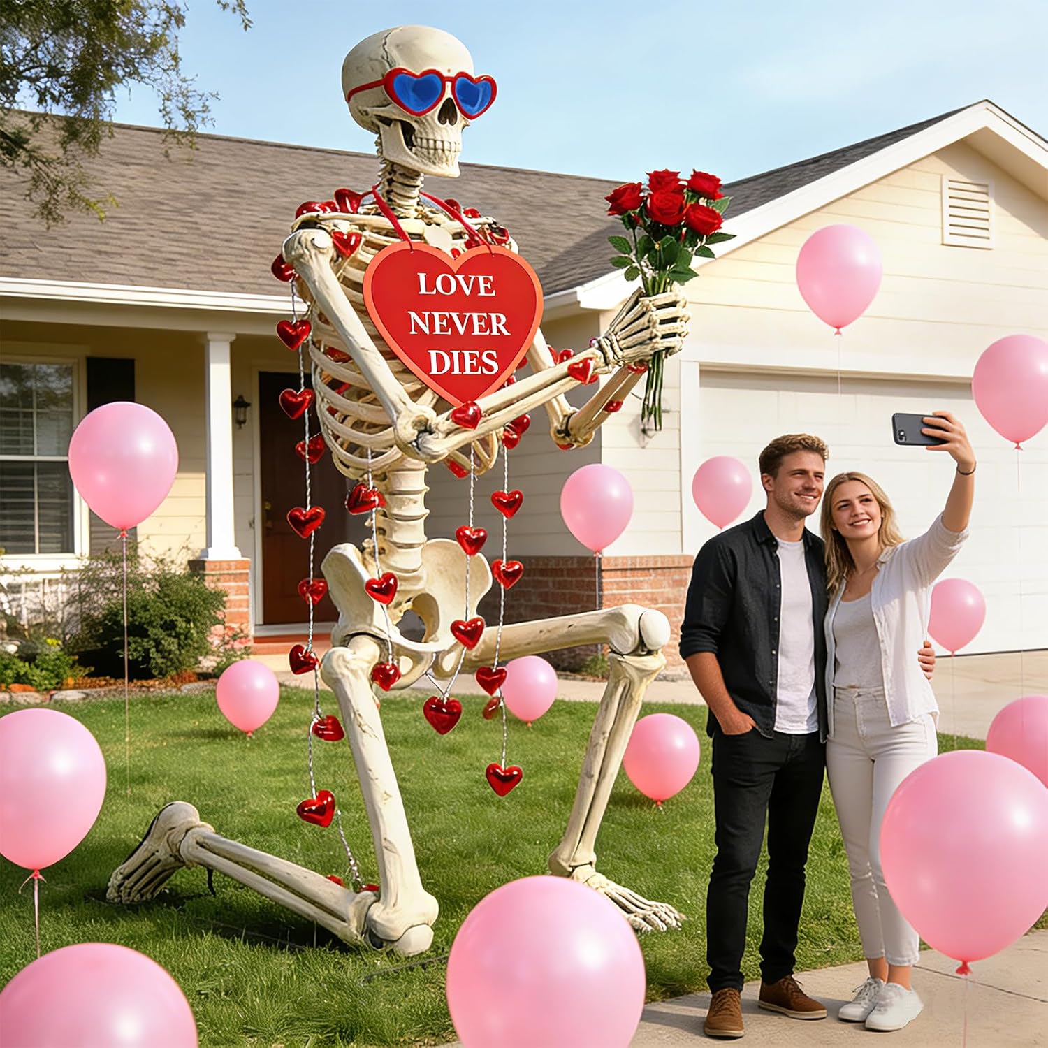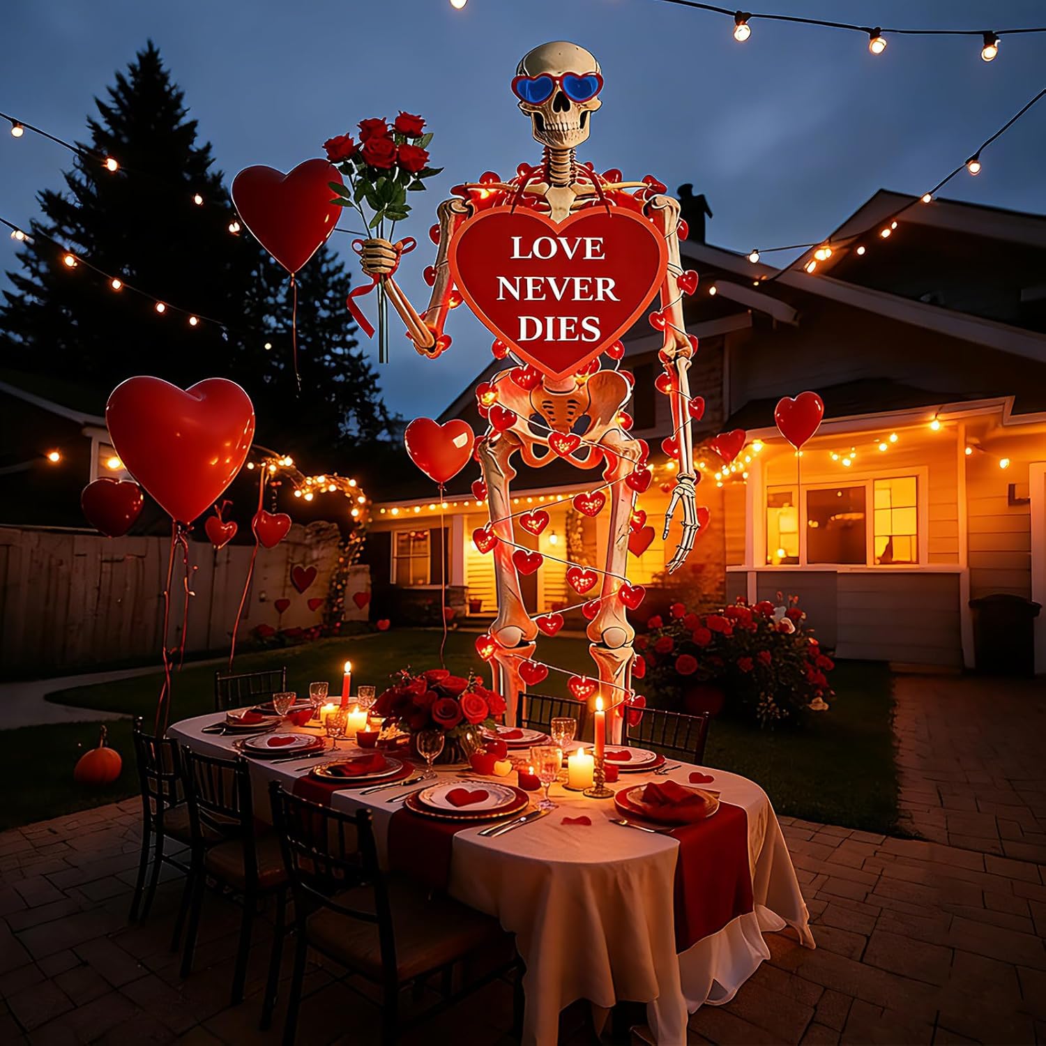Designed Specifically for 12ft Skeleton Valentine’s Day Decor – This Valentine’s Day decoration kit is designed exclusively for giant 12ft skeletons, allowing you to transform a plain Halloween skeleton into a romantic seasonal centerpiece. Instead of storing your skeleton after October, this kit helps extend its use into Valentine’s Day with a fun and eye-catching upgrade, perfect for yard, garden, and lawn displays.