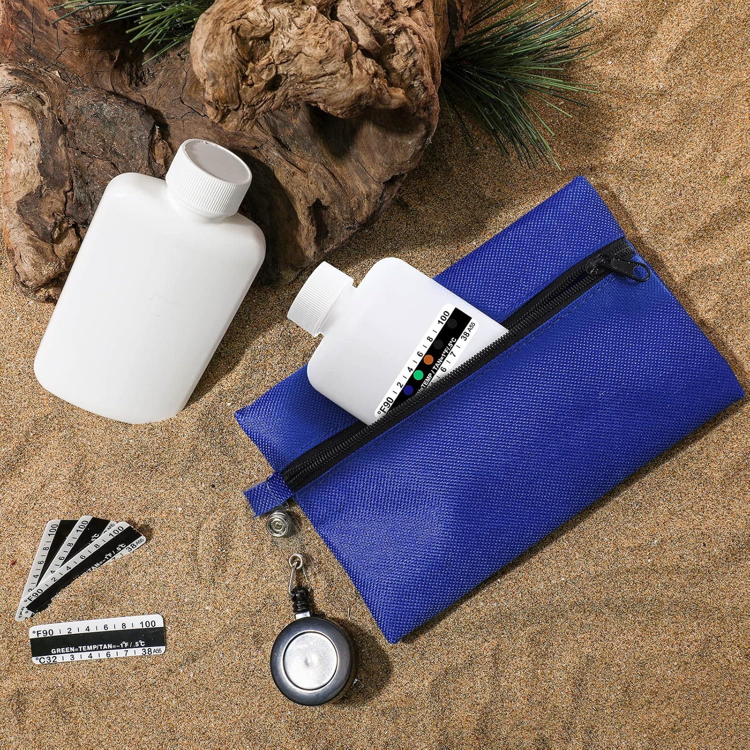 What you will get: in this package you will receive 2 pieces empty bottles, 10 pieces temperature test strips, 1 piece retractable drawstring clip and 1 piece hidden detachable zipper pouch without logo, the combination is convenient for your daily use