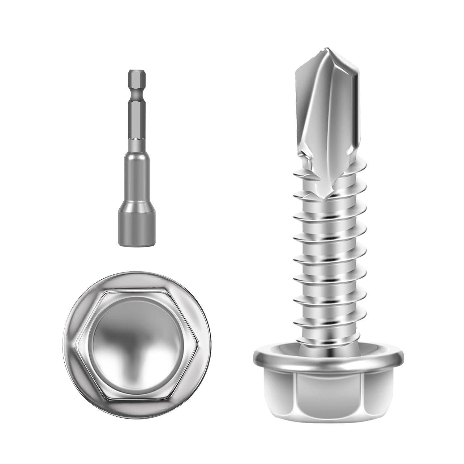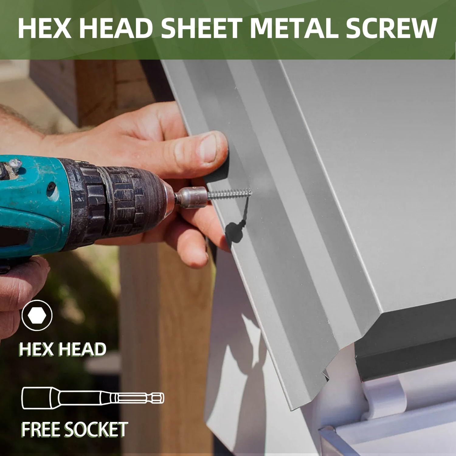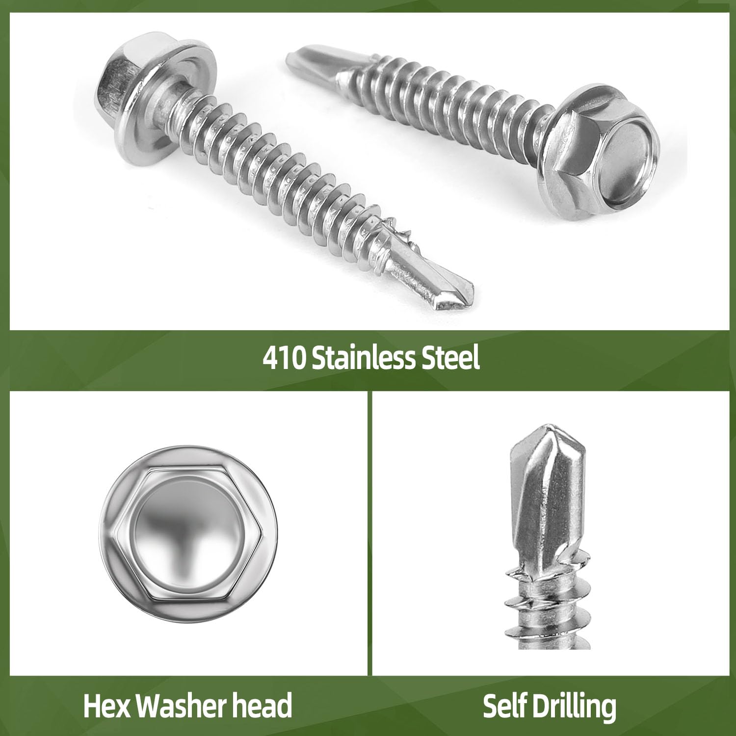The hex washer head of the screw can secure fastening and greater holding power.