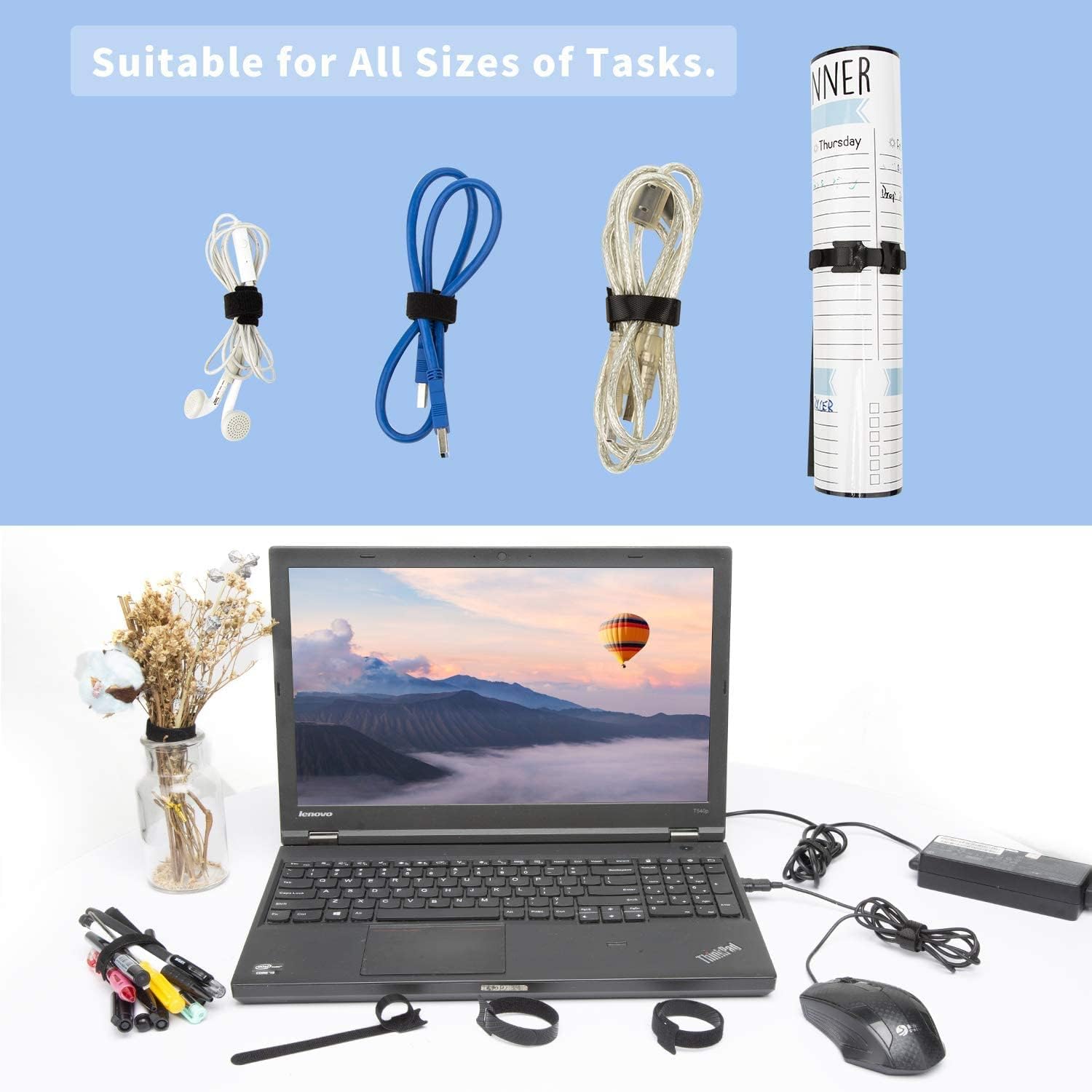 The Cord Organization Straps is great for tracking down and combining all of your wayward cords. They can used to keep all of phone cords neat for traveling.Each cable strap with a hole in the tail, are designed can be connected together and make the strap longer.You can use this wire ties bound larger items such as yoga mat, picnic mat,umbrellas, sports equipment, boxes, books, tools and other travel or outdoor supplies ect.