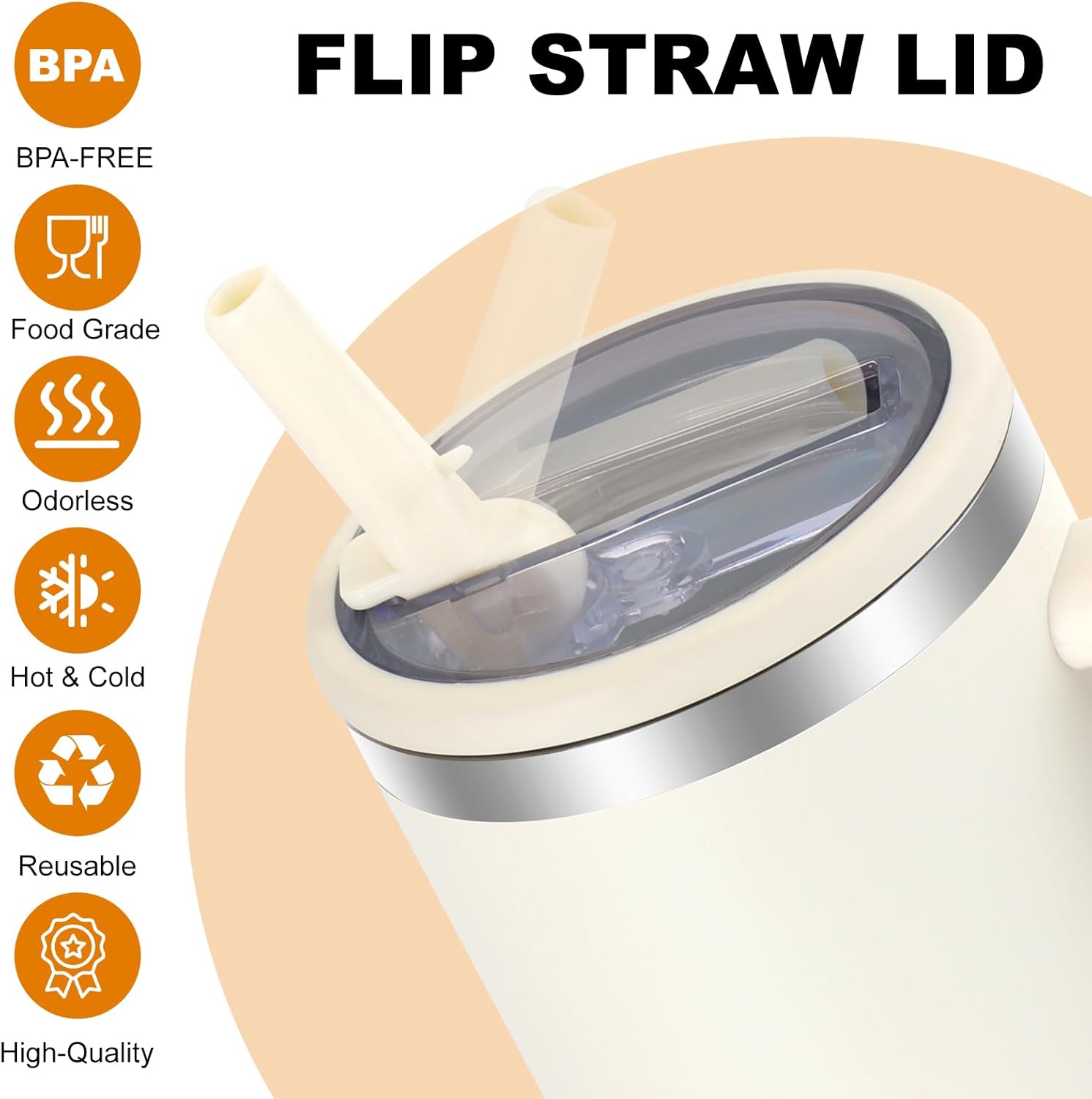 【CONVENIENT FLIP STRAW】Foldable straw design, easy to open and close, you can drink at any time during sports or travel, and it can effectively prevent dust from entering the cup.