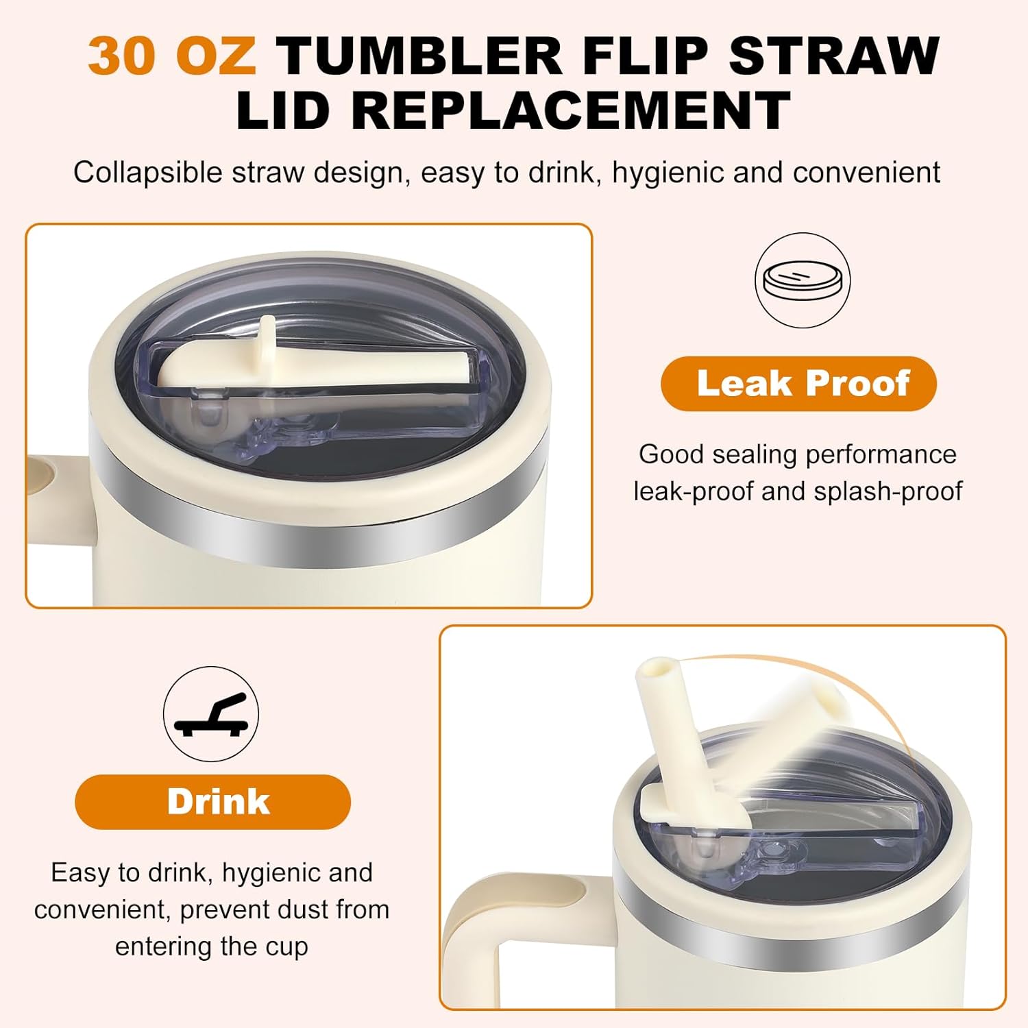 【LEAK PROOF FLIP STRAW LID】For stanley lid replacement 30 oz. Engineered to prevent leaks and spills, good sealing performance allow you to carry, do sports, and drink with complete peace of mind, without worrying about liquid splashing and leaking.