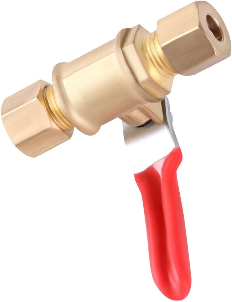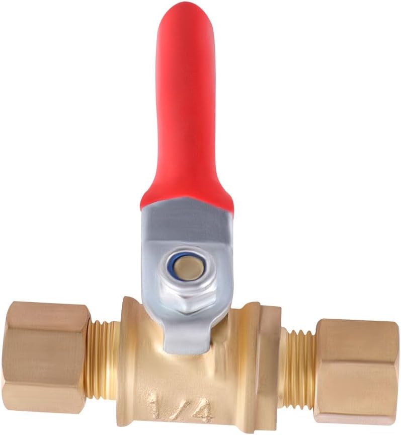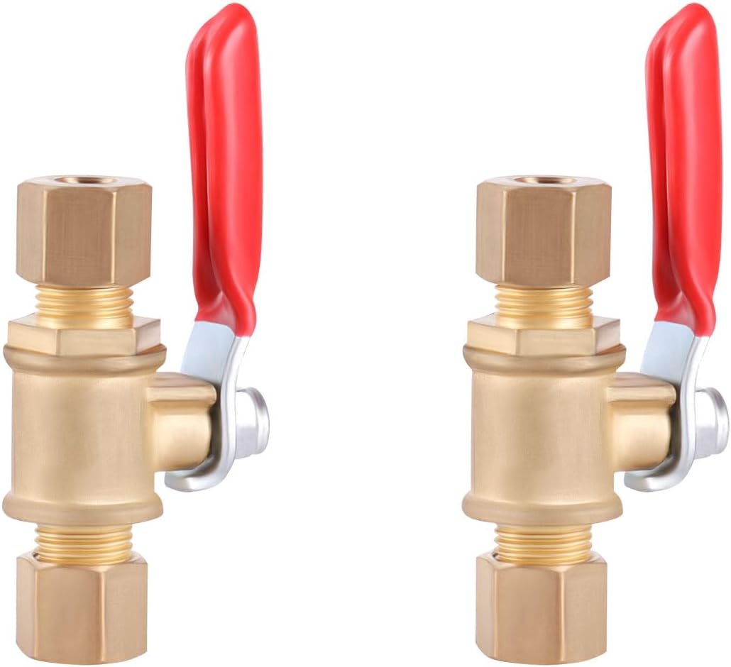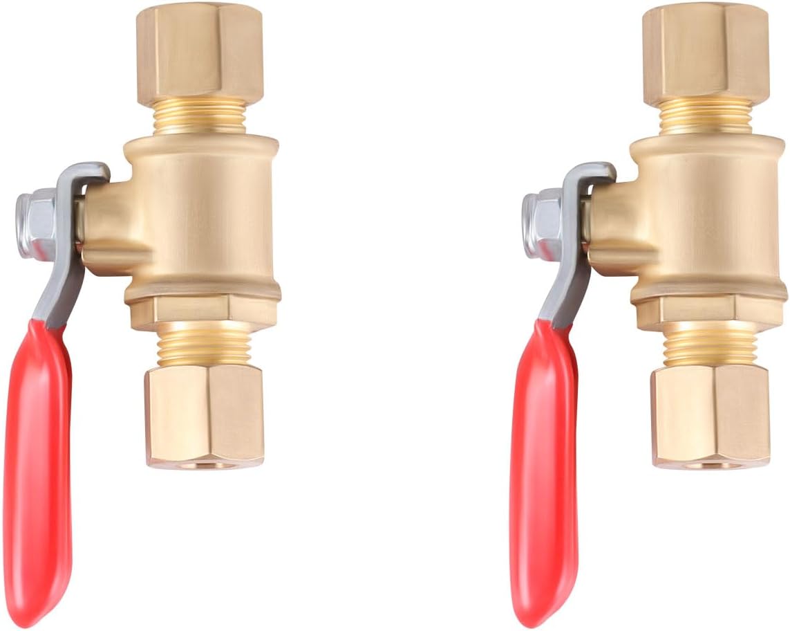 Designed with 1/4 inch compression fittings, these shut-off switches are perfect for refrigerator water lines, allowing you to completely shut off the water supply when needed. The compact size and easy-to-use switch make them a convenient addition to any plumbing setup. Constructed from durable brass material, these valves ensure reliable performance and long-lasting use. Whether you need to perform maintenance, replace components, or simply want to control water flow, this 2-pack provides a practical solution. Upgrade your plumbing system with these high-quality shut-off valves and enjoy the convenience of effortless water control.