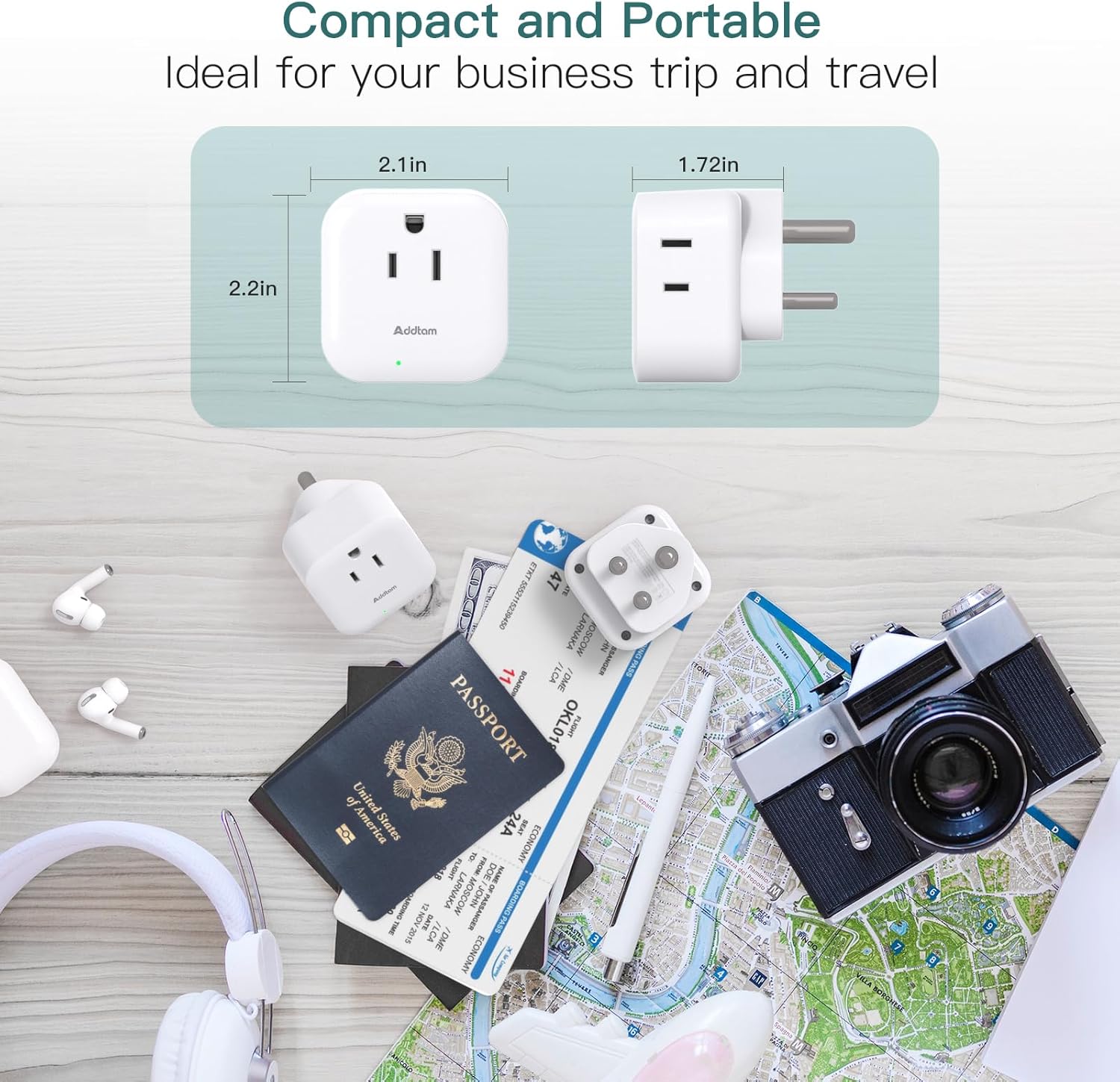 Compact and ultra-light weight travel plug adapter can easily put in any bags or luggage, easy to carry out. Product Dimension: 2.1*2.1*1.1 inch.