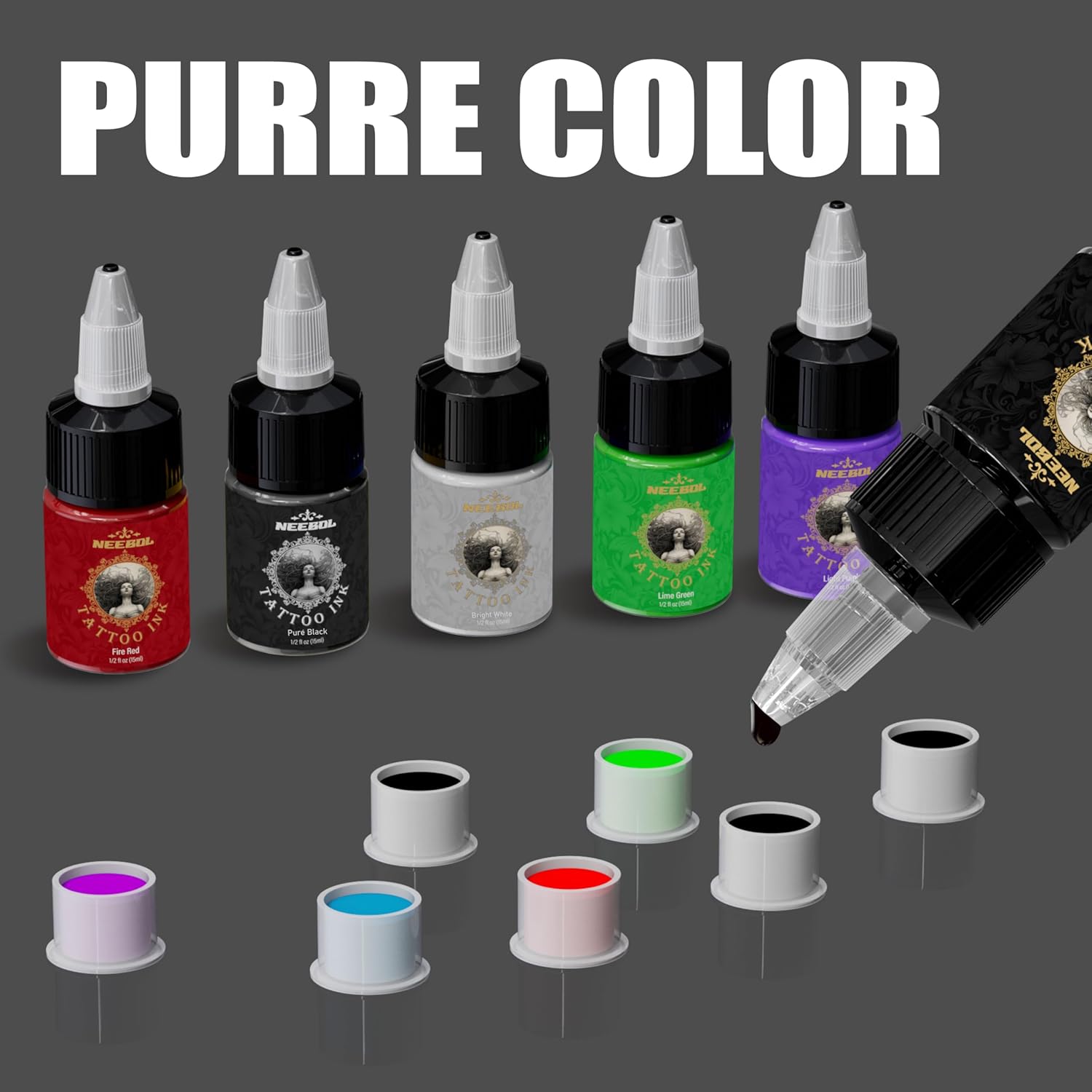 HIGH-PIGMENT INK FOR VIBRANT RESULTS – Formulated with high-concentration pigments for smooth application and excellent color saturation. The ink absorbs easily into the skin, maintaining rich color without fading after healing.