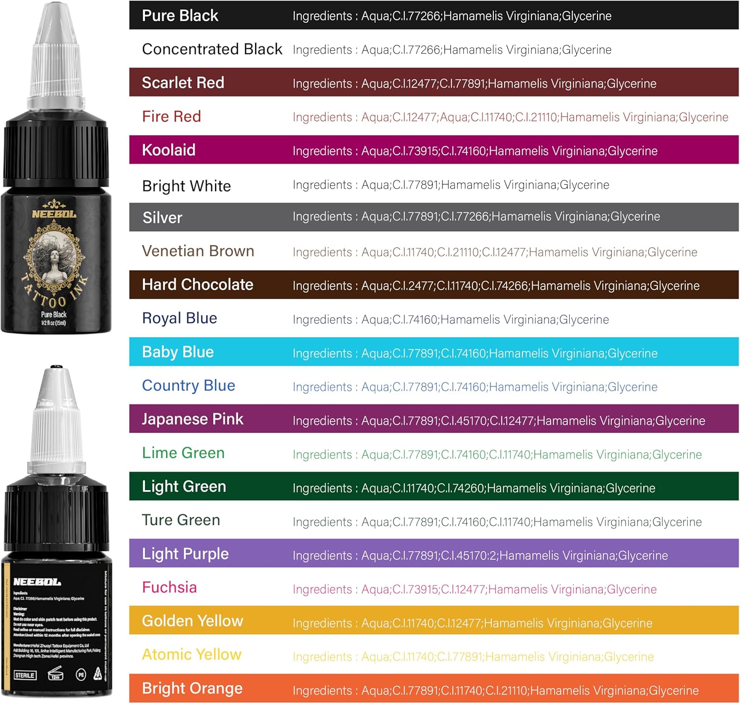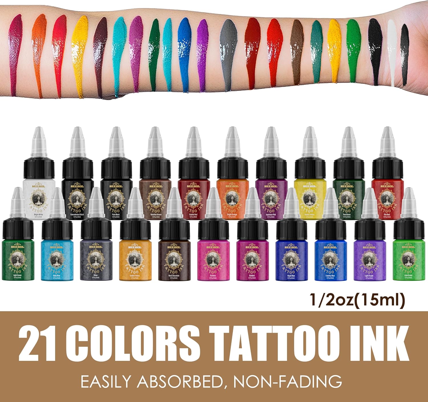 21 COLOR SETS AVAILABLE – A vibrant selection of classic black, white, and highly saturated colors to suit various tattoo styles. Unlock endless creative possibilities with this diverse palette.
