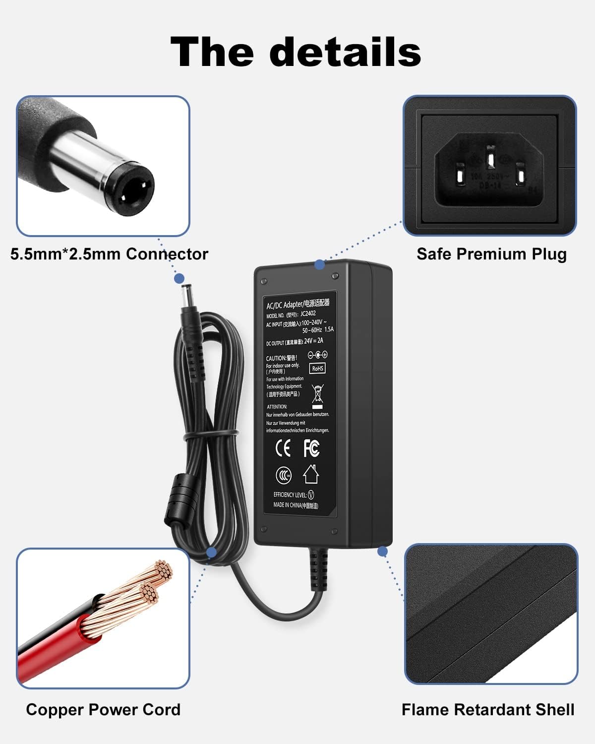 【 What you will get 】 24V 2A Power Supply x 1. AC Power Cord x 1. 24-month long time and friendly customer service.