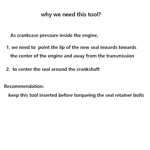 Use the tool to push the lip of the new seal towards the center of the engine and keep away from the transmission, also centers the seal around the crankshaft, to keep the crank pressure inside the engine and avoil oil leaking