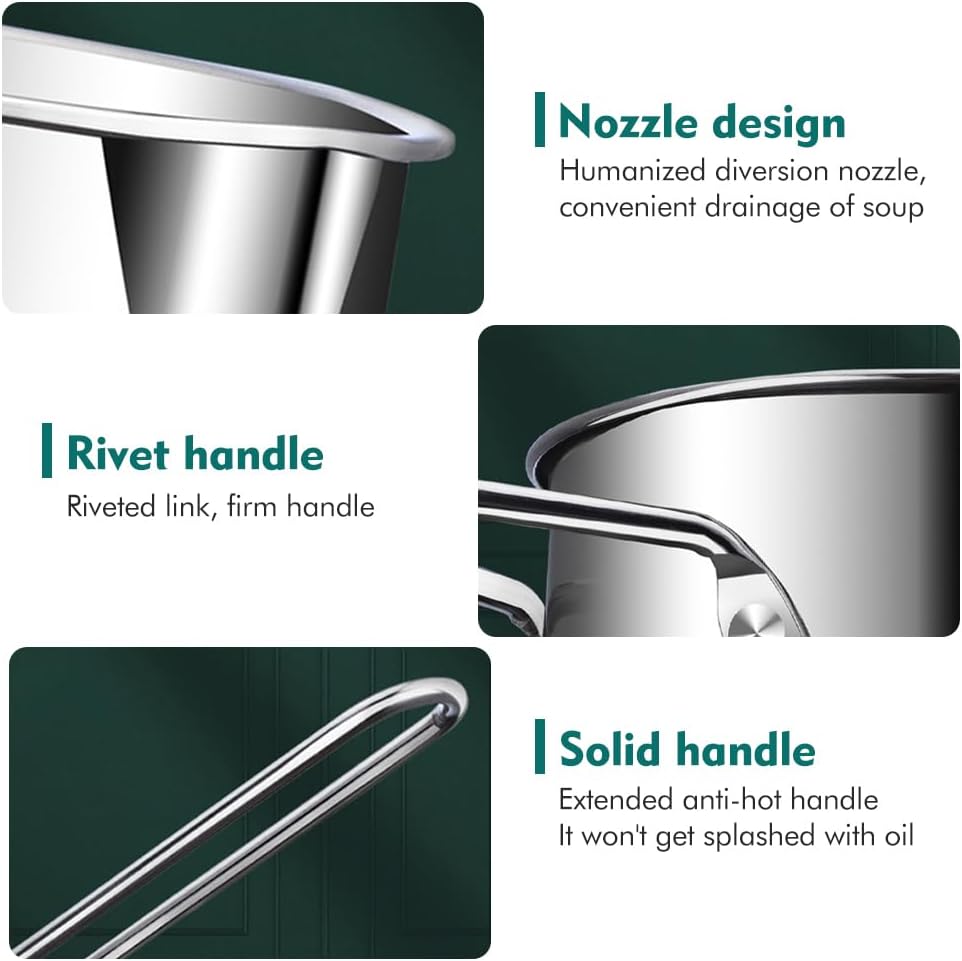 【EASY TO USE】This deep fryer pot has a guide nozzle design to facilitate the discharge of soup or oil. Riveted handle, firmly locked, not easy to fall off, extended design, easy to operate, prevents hands from being scalded by oil splashes.