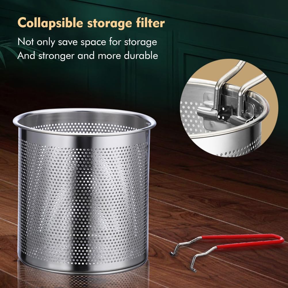 【STRAINER BASKET, HANDLE AND LID】You will receive 1pc deep fryer pot, 1pc filter basket, 1pc food tong, 1pc pot lid and 1pc stove anti-slip rack. The strainer basket that filters out impurities and oil residue to make healthier, more flavorful fried food. Elongated handle design ensures more convenient and safer use, avoiding burns. Deep fryer pot with lid, besides frying food, also can be used as a soup pot, noodle pot, porridge pot, milk pot.