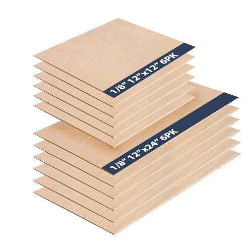 3MM 1/8″ x 12″ x 24″ & 12″ x 12″ Baltic Birch Plywood – B/BB Grade (12pk) Ready for Glowforge Laser Printers – Perfect for Arts and Crafts, School Projects and DIY Projects