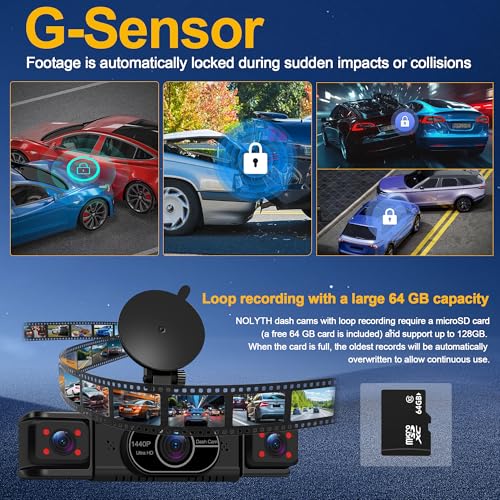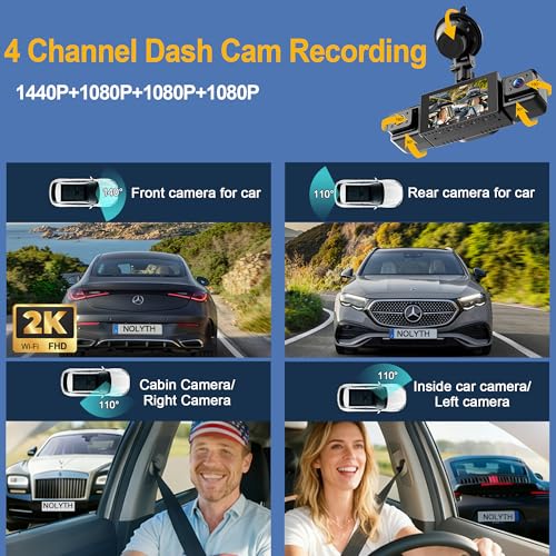 Safe Driving for Daily Drivers: The NOLYTH dash cam features a 4 channel simultaneous recording, capturing front, rear, left and right (inside/cabin) views to record every detail of the entire road, ensuring safer and more worry-free driving with Ultra HD at 2K front and 1080P rear left right resolution. With a 140° front view and dual 110° cabin and rear views, the 4-channel dash cams provide commercial/rideshare drivers (including Uber, Lyft, taxi and delivery drivers) with 360° protection
