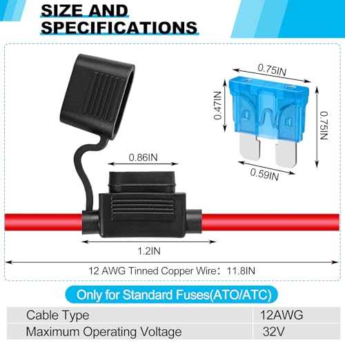 【HEAVY-DUTY 12AWG WIRE】The fuse holders feature 12AWG heavy-duty wire, ensuring safe and reliable electrical current transmission and superior circuit protection for vehicles and equipment