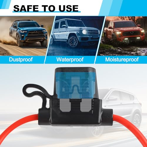 【BROAD APPLICATION SCOPE】The waterproof inline fuse holder designed for easy installation, saving you time and hassle. Suitable for various vehicles such as for Automotive, Marine, Golf Cart Lighting, Electrical Circuits etc
