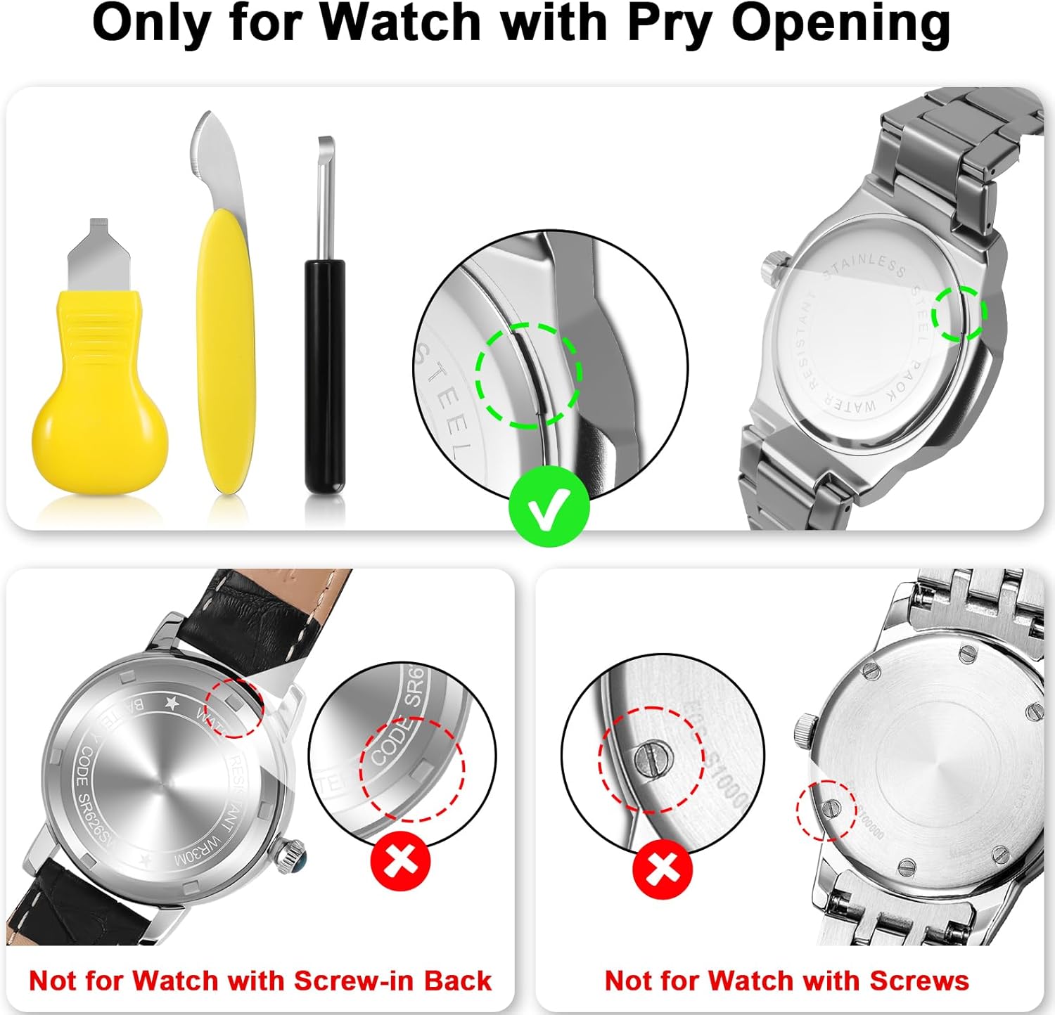 4 PCS Professional Watch Back Removal Tool,Pry Back Case Opener, Battery Replacement Set, Watch Repair Kits