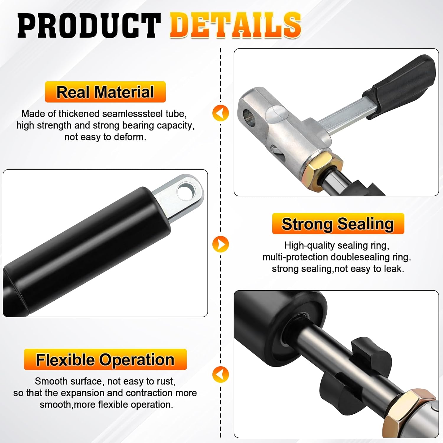 【Premium Quality】The Steering Column Shock Cylinder made of high-quality stainless steel, covered with anti-corrosion paint material, provide better resistance in the various and changeable environment,even in extreme weather conditions, it can still maintain excellent shock absorption and mechanical strength