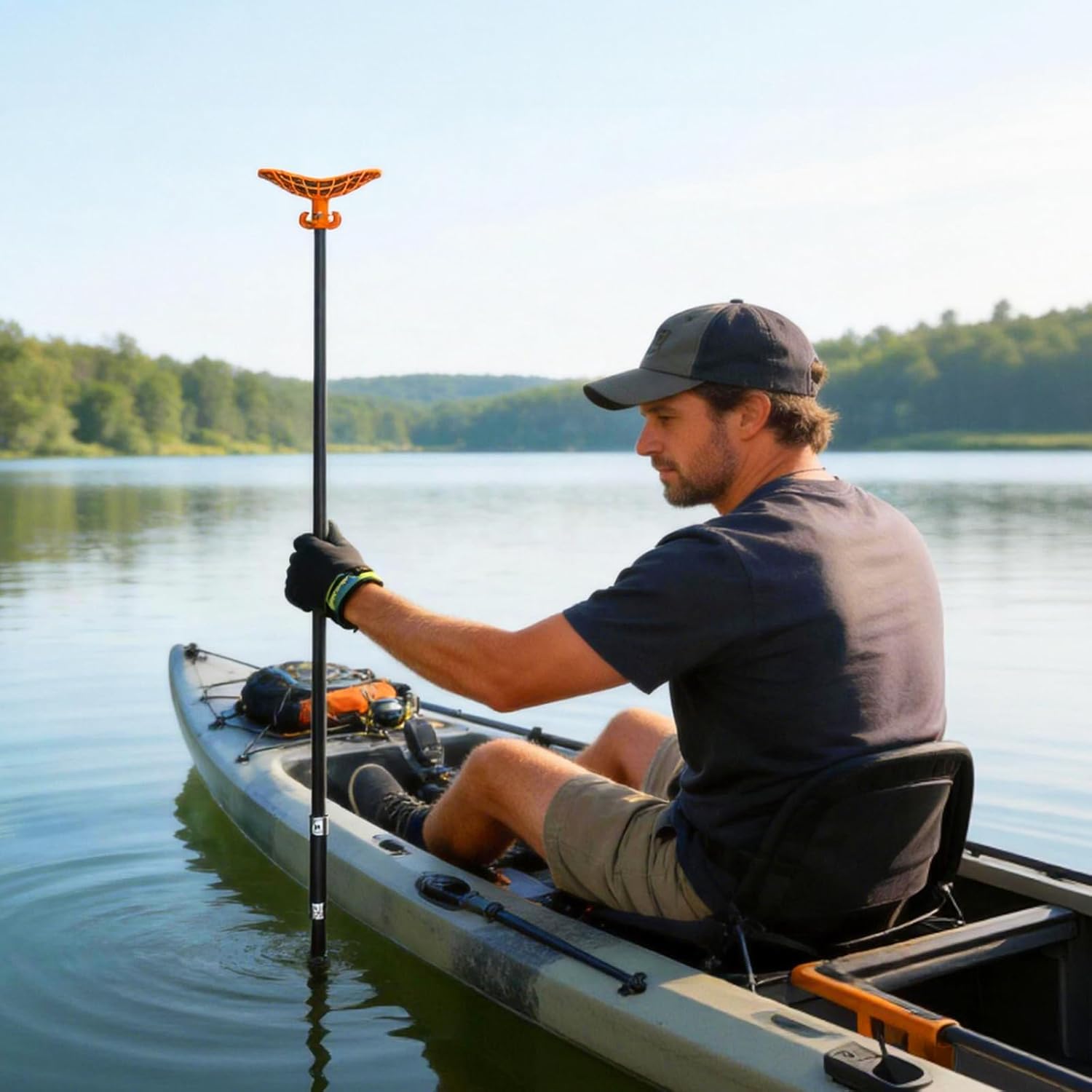 8.63’/12.3′ Shallow Water Anchor Pole with T-Handle, High Strength Fiberglass Reinforced Polyamide66, Mud Anchor Pole for Boat, Fishing Kayak (Gloves Included)