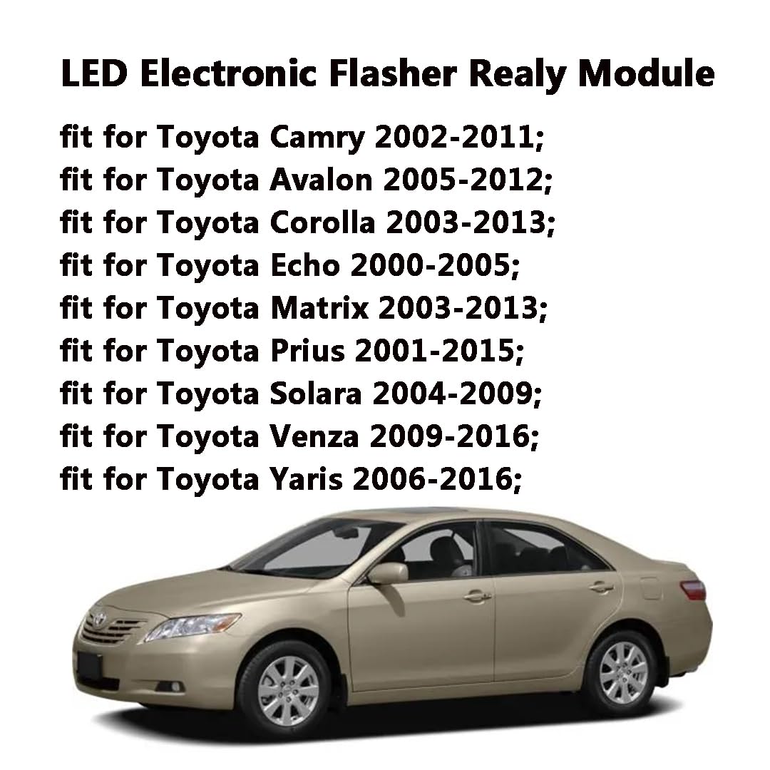 LED Flasher Fits Models : Flashers Relay Assembly Fit for Toyota Avalon 2005-2012 | Camry 2002-2011 | Corolla 2003-2013 | Echo 2000-2005 | Matrix 2003-2013 | Prius 2001-2015 | Solara 2004-2009 | Venza 2009-2016 | Yaris 2006-2016