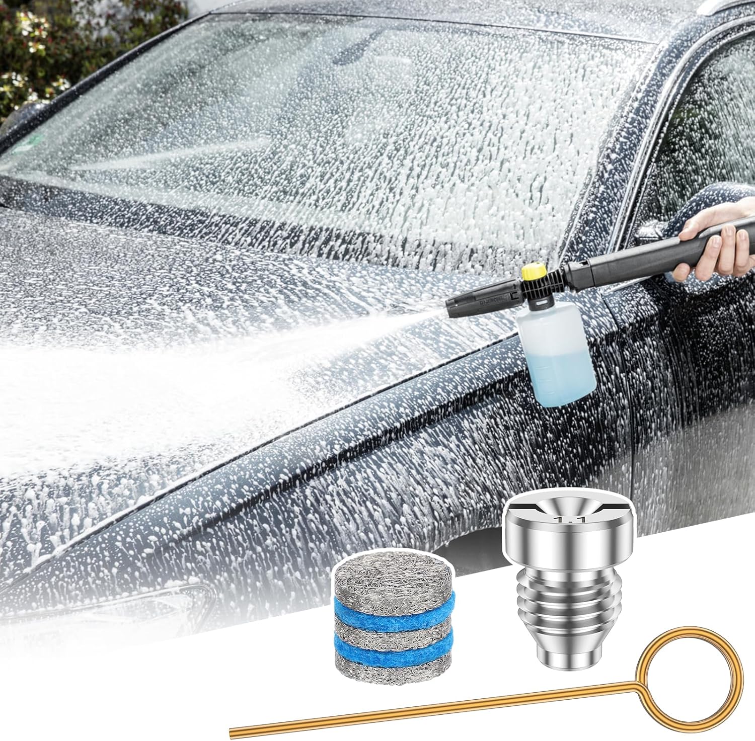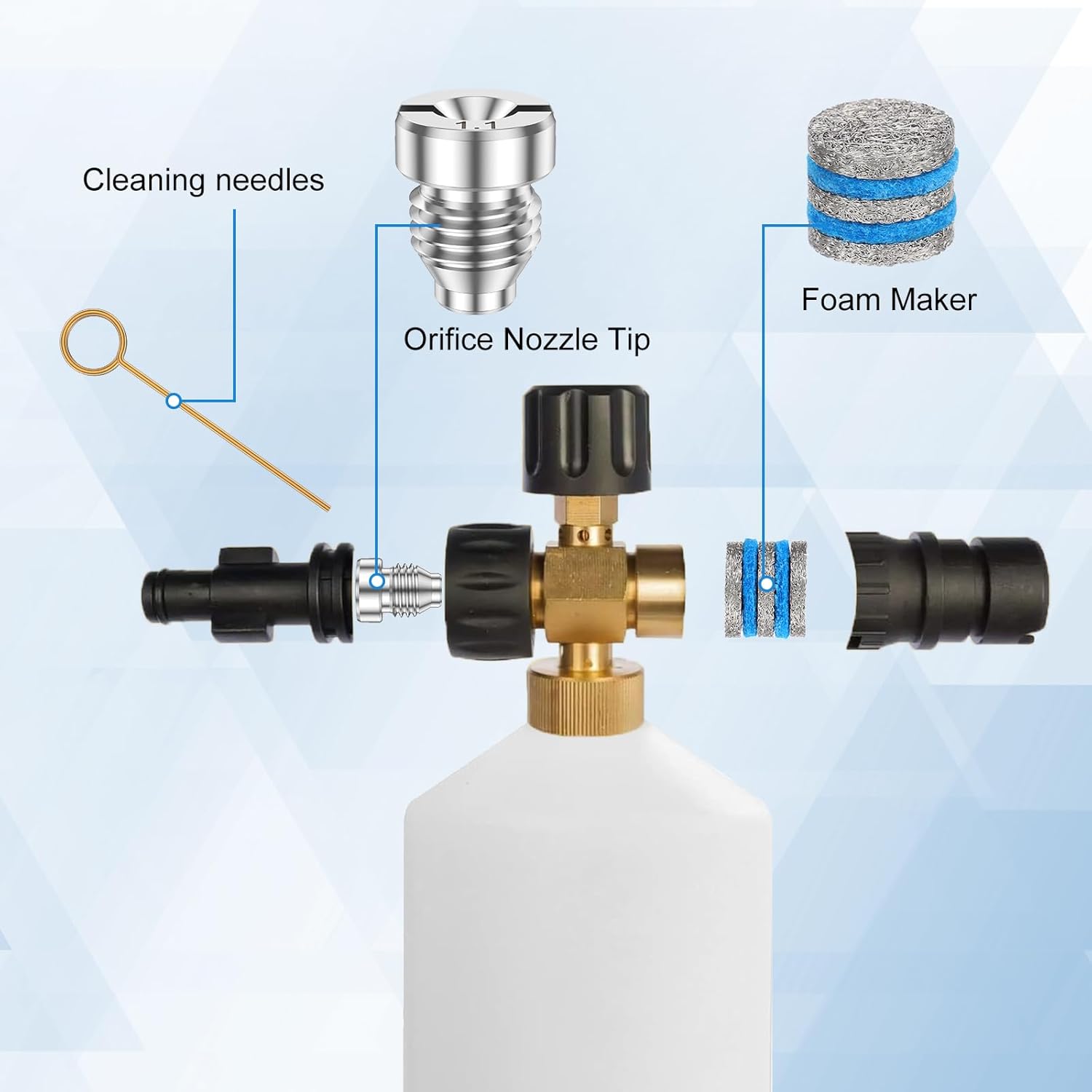 Effective Cleaning: The nozzle with 1.1 mm pore size ensures stable high pressure foam output, which is very suitable for producing thick foam for effective cleaning