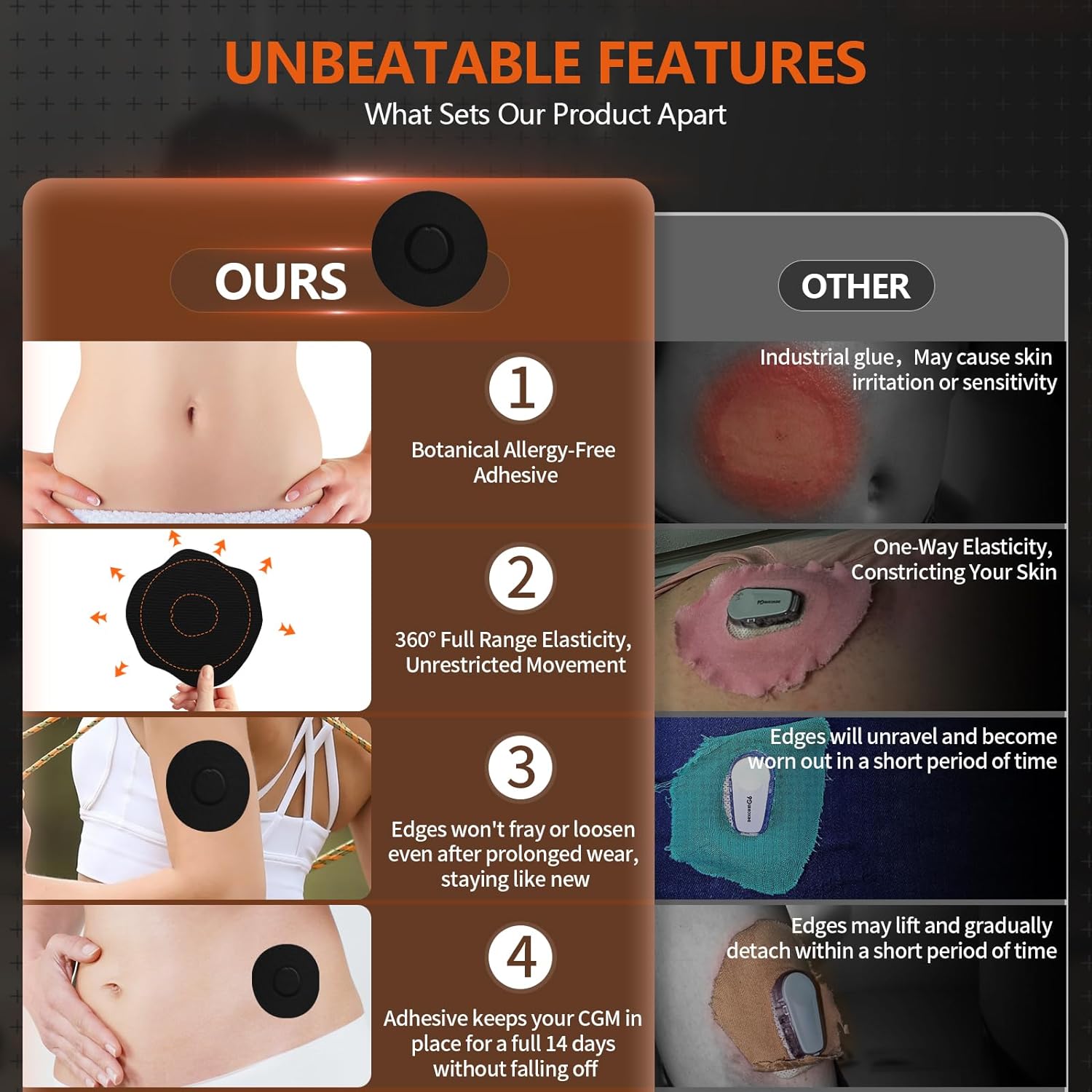 Comfortable Fit: Say goodbye to uncomfortable and unsightly CGM patches! We use nano 360° elastic fabric that is designed to stay put and remain smooth even after extended wear, and patches are super elastic without ever feeling restrictive