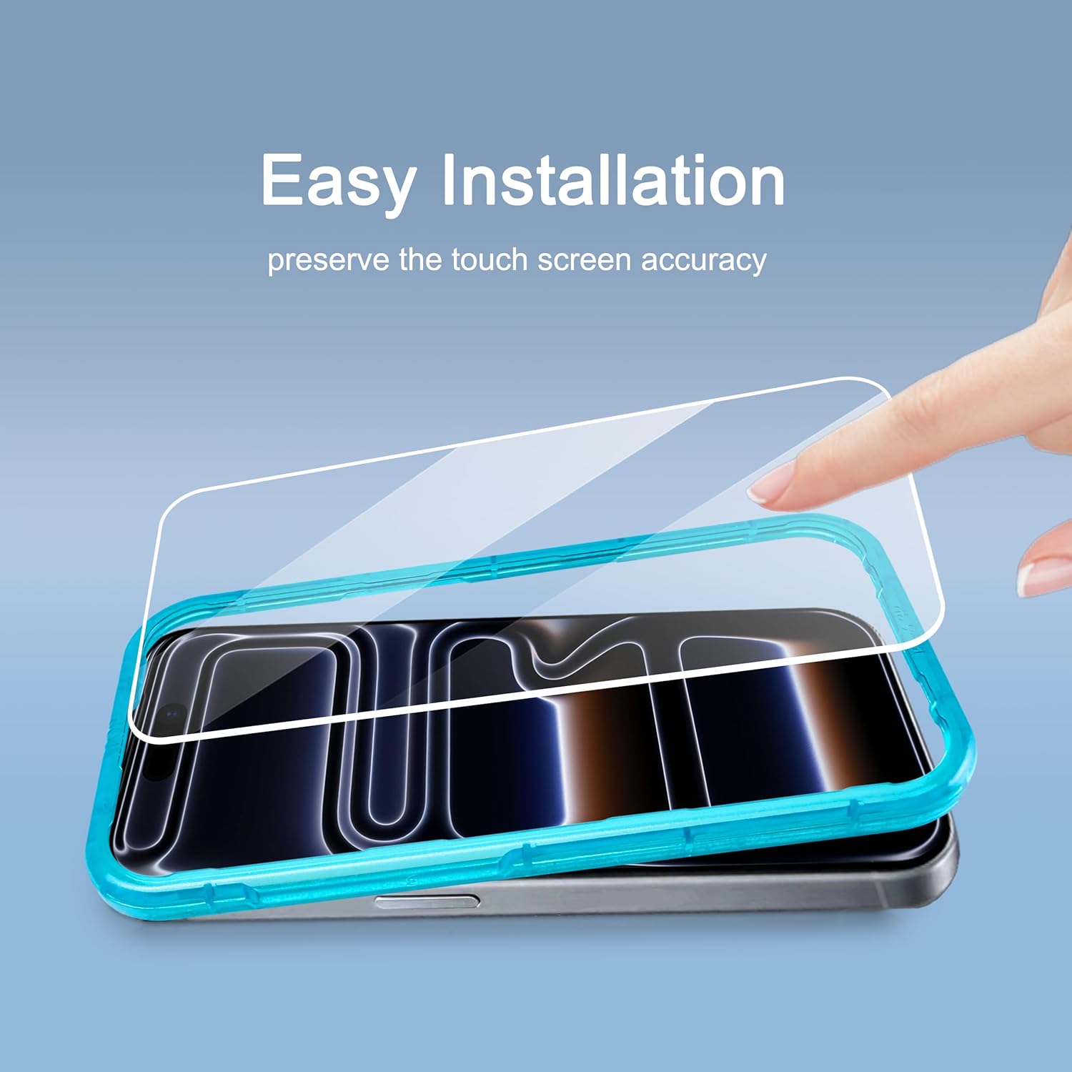 [3+3 Pack] This product includes 3 pack screen protectors and 3 pack camera lens protectors with Installation Frame. Due to the rounded edge design of the iPhone 17 Pro 6.3 inch and to enhance compatibility with most cases, the tempered glass screen protectors was designed to be slightly smaller than the whole phone screen surface, yet still covering the entire display area to provide maximized screen protection. [Not for iPhone 17 6.3 inch, iPhone Air 6.5 inch, iPhone 17 Pro Max 6.9 inch]