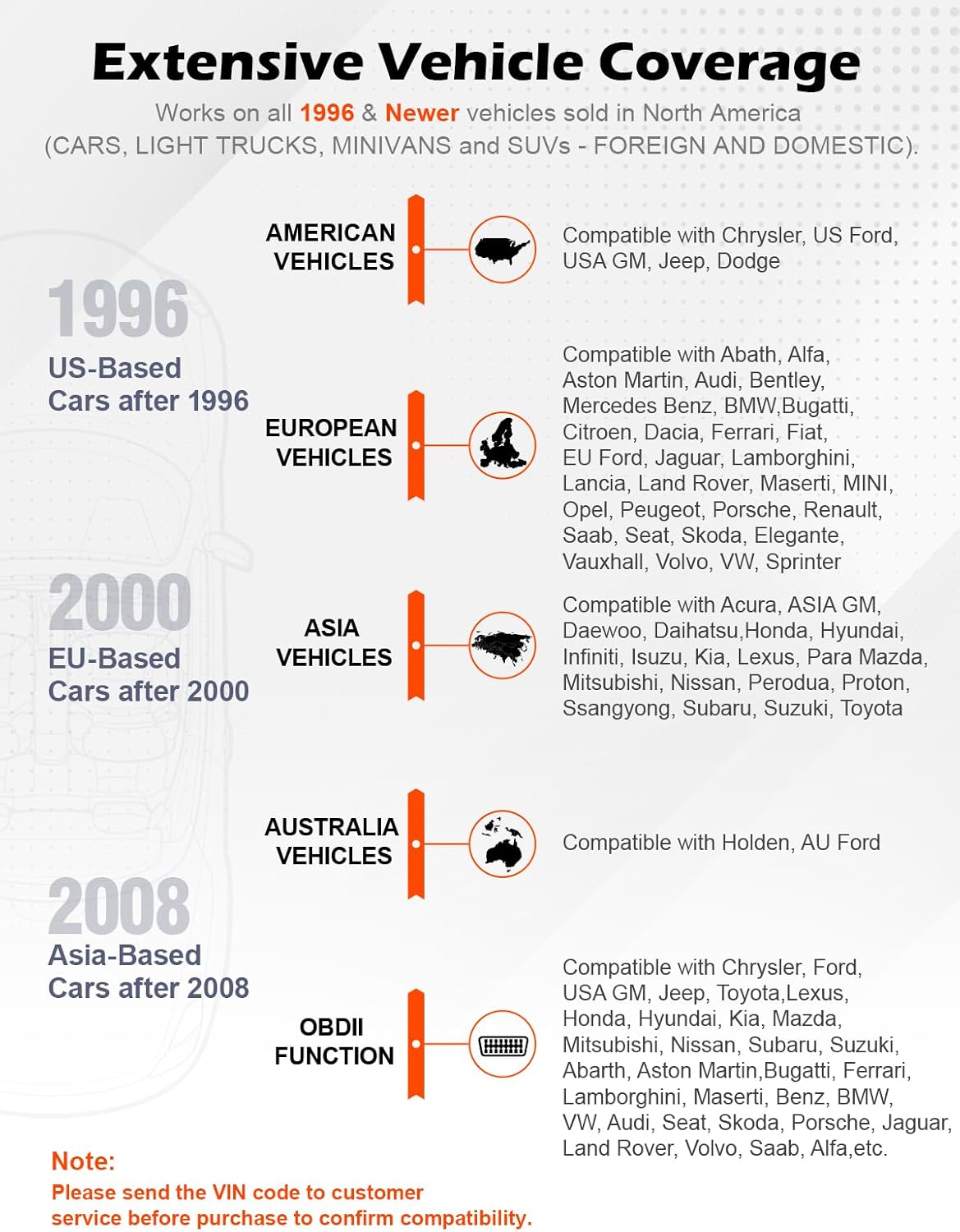 OBDII Protocols and Car Compatibility: Many cheap scan tools do not really support all OBD2 protocols. AD310 scanner as it can support all OBDII protocols such as KWP2000, J1850 VPW, ISO9141, J1850 PWM and CAN. This device also has extensive vehicle compatibility with 1996 US-based, 2000 EU-based and Asian cars, light trucks, SUVs, as well as newer OBD2 and CAN vehicles both domestic and foreign. Pls confirm with our customer service whether it is compatible with your vehicle before purchasing.
