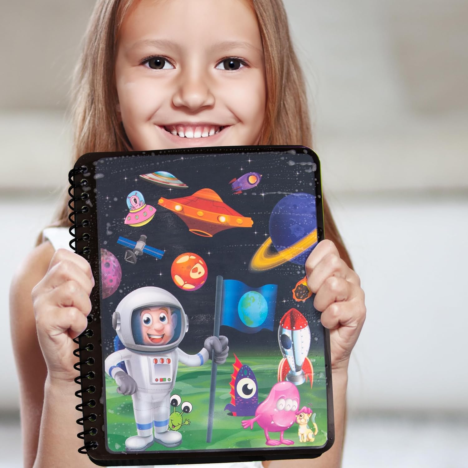 4 DIFFERENT THEMES: There’s an ocean, fairytale, dinosaur, and space-themed water paint book in every set. 4 spiral-bound pages give kids an opportunity to learn and indulge their imagination with the magic ink coloring books for toddlers.