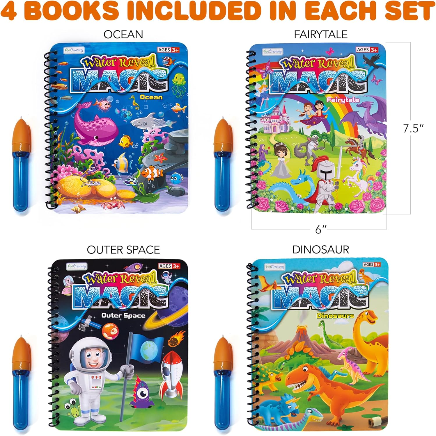 ArtCreativity 4 Pack Magic Water Coloring Books for Toddlers, Reusable Magic Water Pen Coloring Books for Kids – Mess Free Water Art Book for Toddlers – Travel Activity Toys, No-Mess Coloring