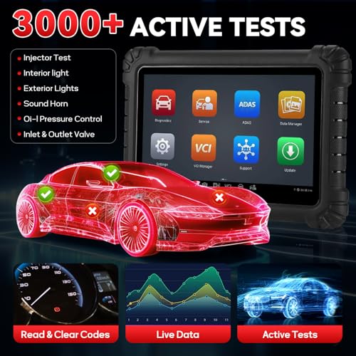 🚀All-System Diagnostics with Bi-Directional Control & Active Tests🚀 Perform full-system diagnostics including reading and clearing codes, viewing live data, and graphing data for real-time vehicle analysis. The bi-directional control feature allows you to test and control vehicle components (such as injectors, fuel pumps, A/C systems, and more) to quickly identify faulty parts and ensure they are working properly. Active tests make it easier to perform key operations like headlamp control, fuel pump testing, and valve activation, providing faster, more precise diagnostics.