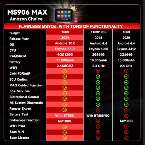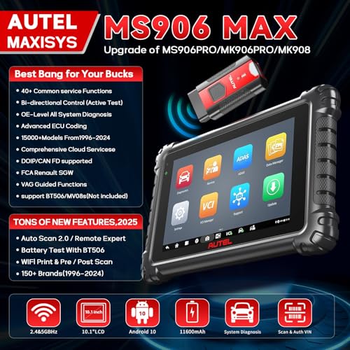 [MS906Pro Outdated, MS906MAX Better🥇] 🔥MS906MAX Released in October 2024🔥 Autel MS906MAX is the latest product from Autel Technology company. MS906MAX is a huge upgrade from MS906Pro. Compared to MS906PRO, MS906MAX has a bigger screen, more powerful processing chip, updated Android system, better navigation interface, support for file sharing feature, etc. Experience these latest technologies now.