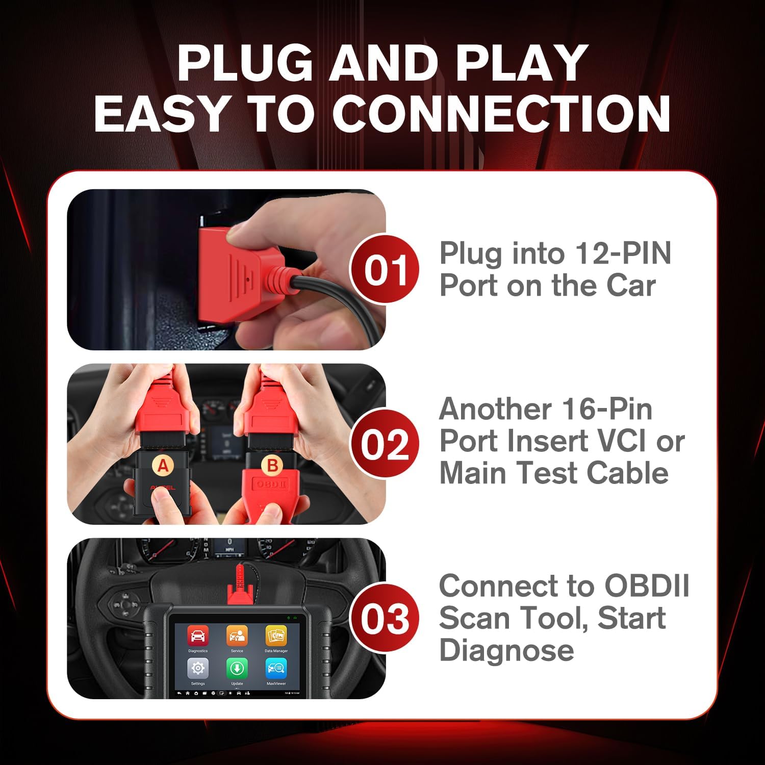 ✅【Reduce Wear and Tear for Your Car】Our 12pin to OBD2 16pin connector works perfectly with scanning software, with stable transmission without interference. Functioning as an extension cord can reduce the wear and tear on the OBD connector caused by frequent plugging and unplugging, and protect your car’s OBDII connector.