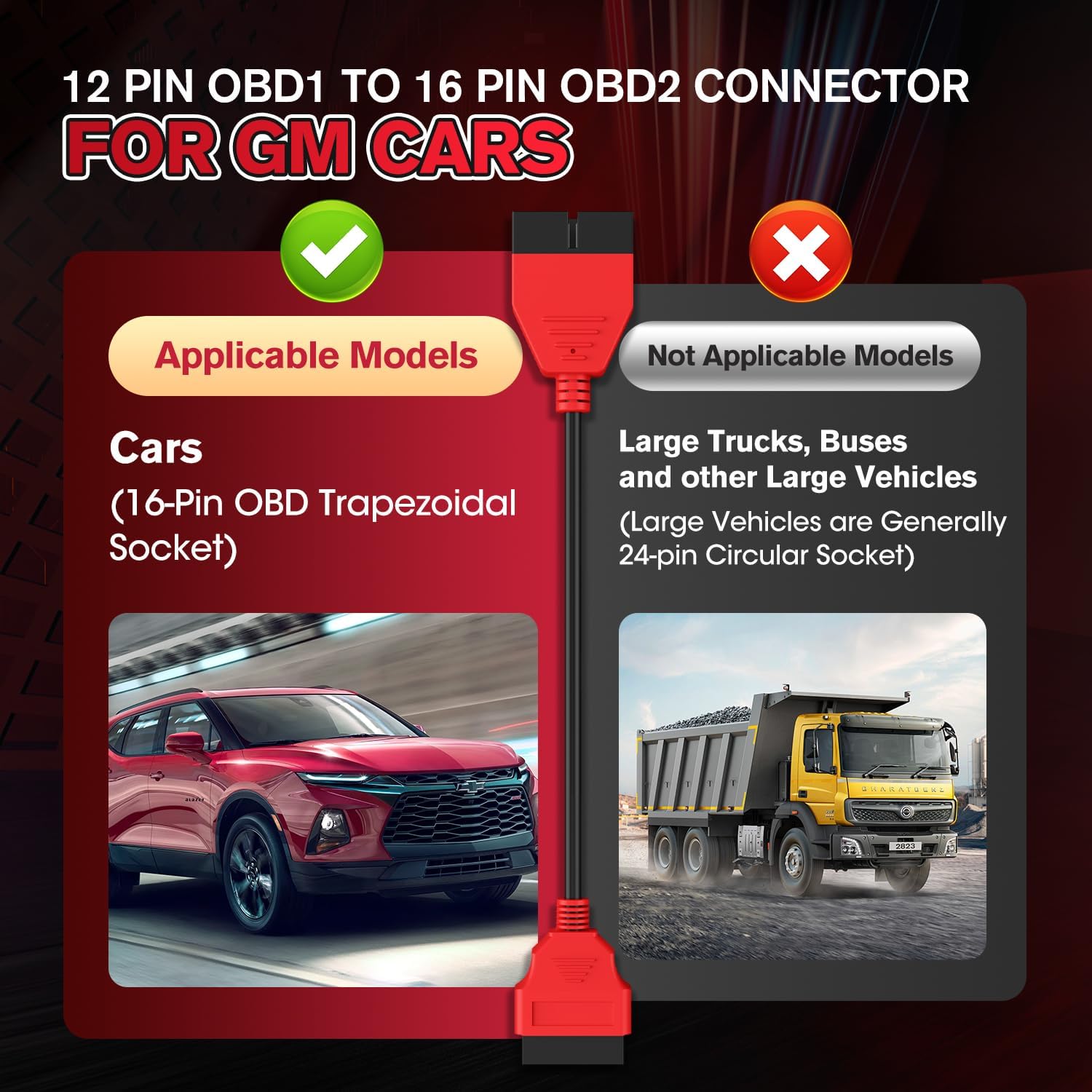 ✅【Compatible with GM Vehicles】 Autel 12-Pin OBD1 male to 16-Pin OBD2 female adapter has high practicality. Our OBD1 scanner connector is a male-to-female extension cable specifically designed to connect the your diagnistic scanner and vehicle to perform a rang of advanced function, such as read/clean codes, ECU coding, full system diagnostic, bidirectional control, etc.