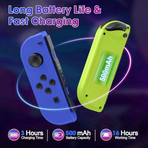 Large Capacity Battery: Replacement switch controller has an excellent built-in 500mAh rechargeable battery. It charges fully in 3 hours and provides up to 18 hours of gameplay. You can enjoy long gaming sessions without worrying about battery life.