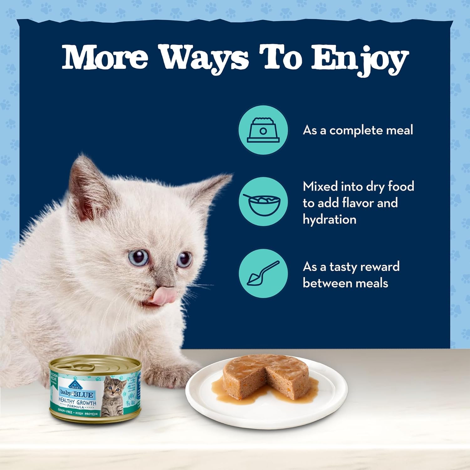 TWO SAVORY RECIPES: This Baby BLUE kitten food variety pack features tasty chicken and salmon recipes