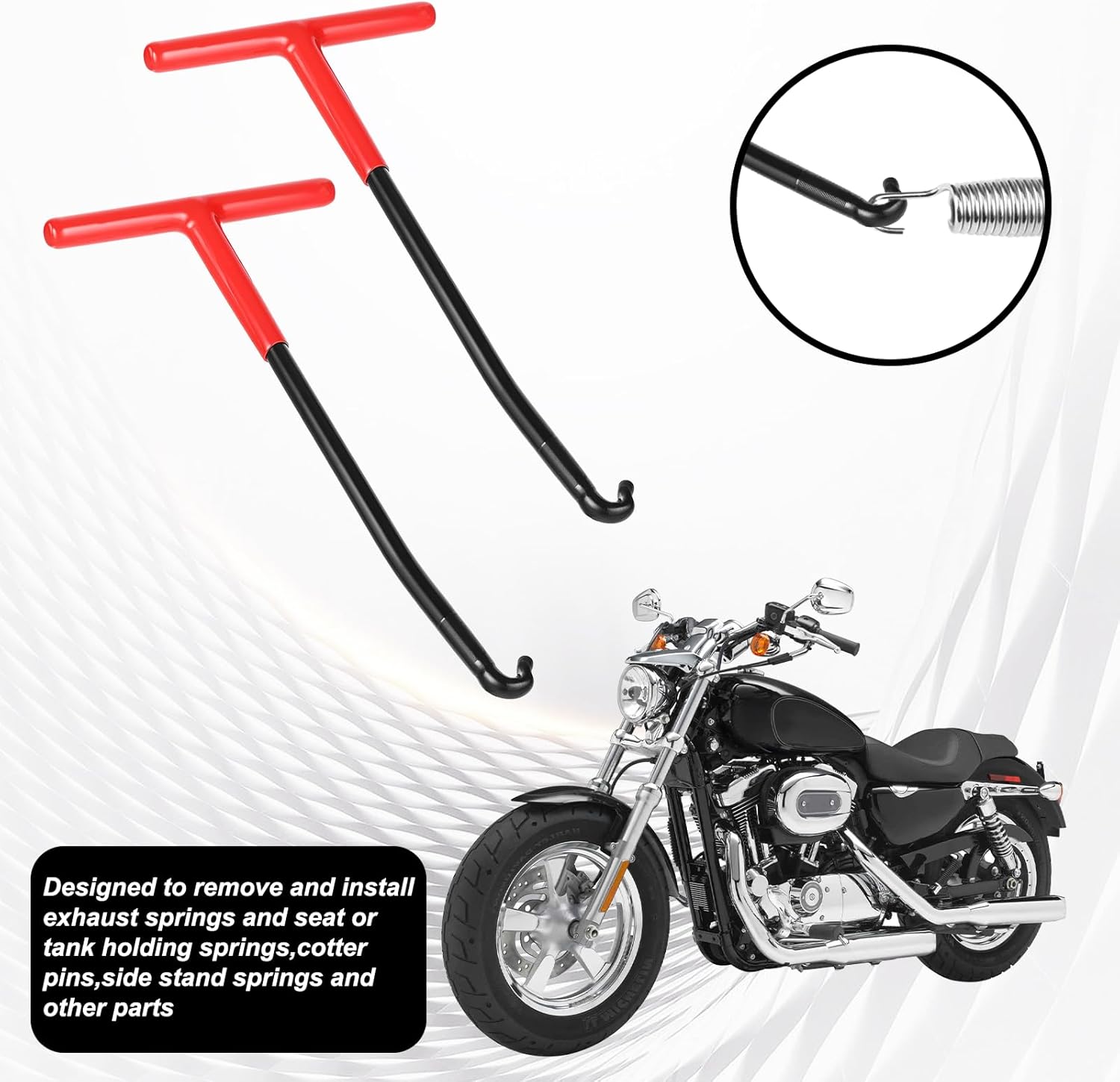Quick Operation: the t-shaped exhaust spring hook is suitable for many places where springs need to be removed and installed, such as vehicle brakes, riding lawnmower decks, motorcycle and more other vehicles