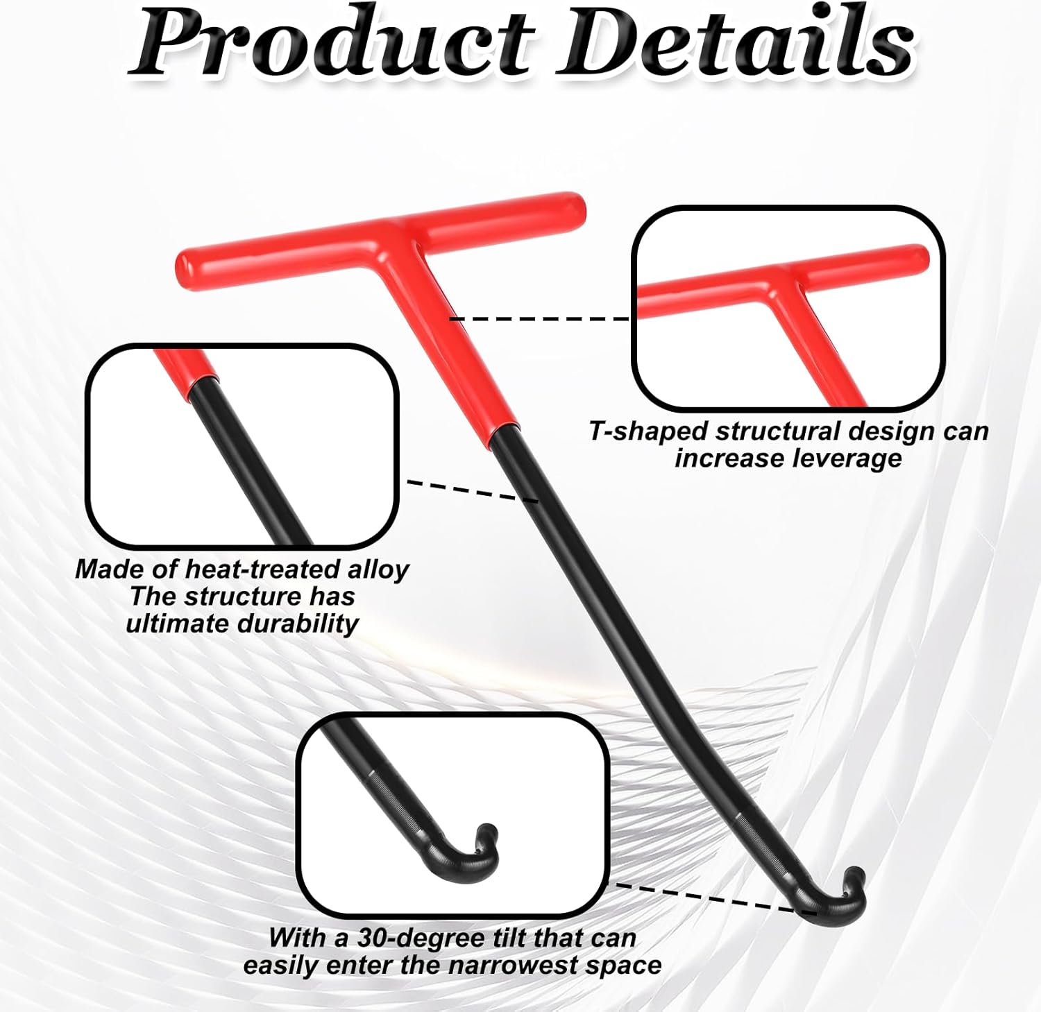 Humanized Design: The exhaust puller tool is designed with a t shape pattern, which can increase the braced force and let you control easily, and the exhaust puller tool is designed with a rubber coating, which can relieve the pressure on your hands and make your use comfortably, and the thin hook which is at the top is convenient for you to operate in a narrow space