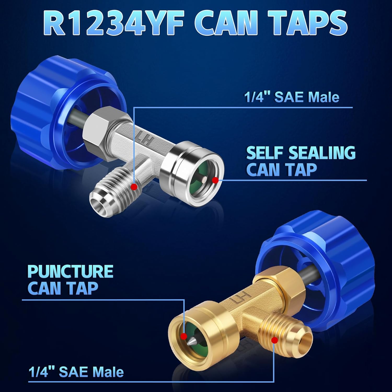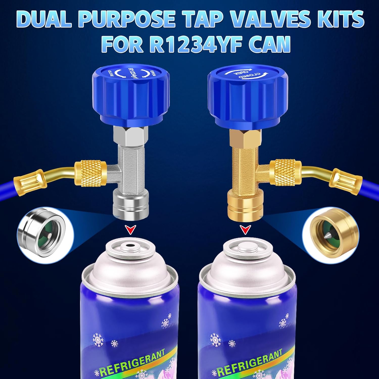 【R1234YF Can Tap】Our R1234YF can tap kit includes self sealing and puncture can tap, They work for self-sealing freon can or single puncture bottle, R1234YF refrigerant dispenser that meet your connectivity needs and provide convenience in your daily life.
