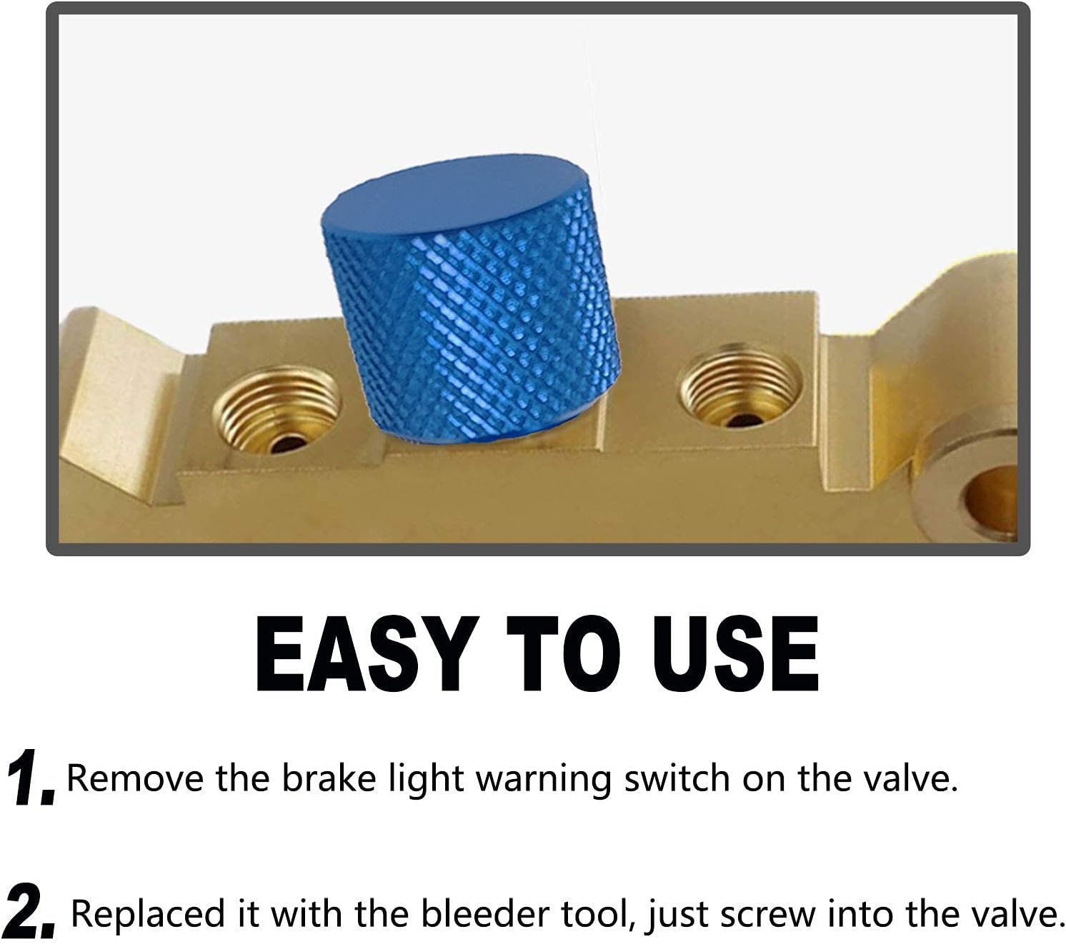 Help you to lock the low pressure exhaust valve, make braking system bleeding more easy and fast, avoid the valve from tripping.Just twist off your brake light warning switch on the valve, then screw this tool into its place easily.
