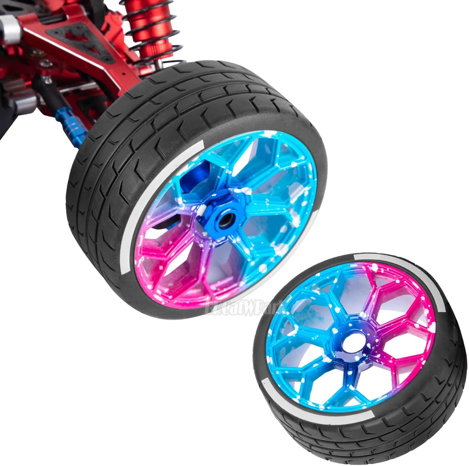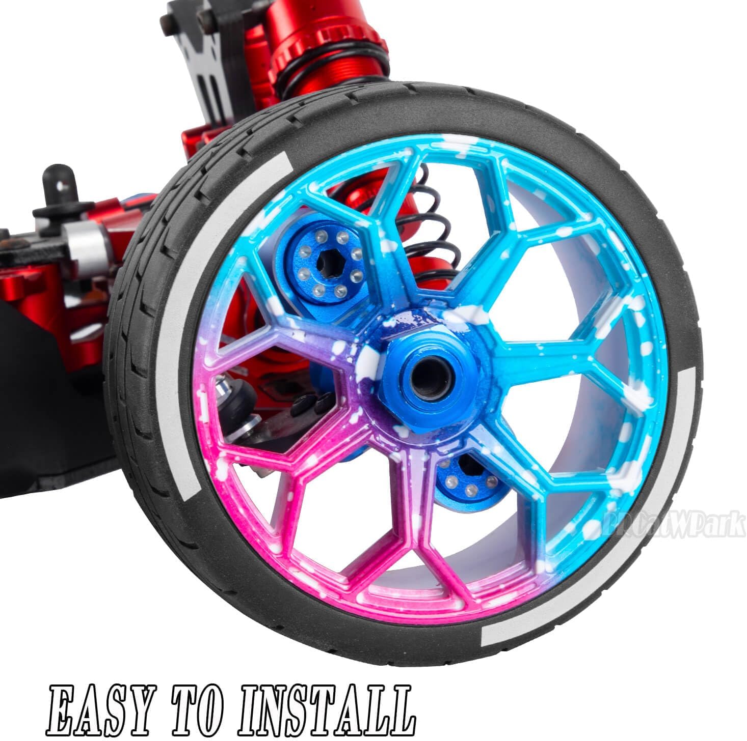 【Long-lasting Performance】: Novel appearance and exquisite workmanship,better to tighten the connection between rim and wheel.making it easier for rc cars to turn and accelerate.