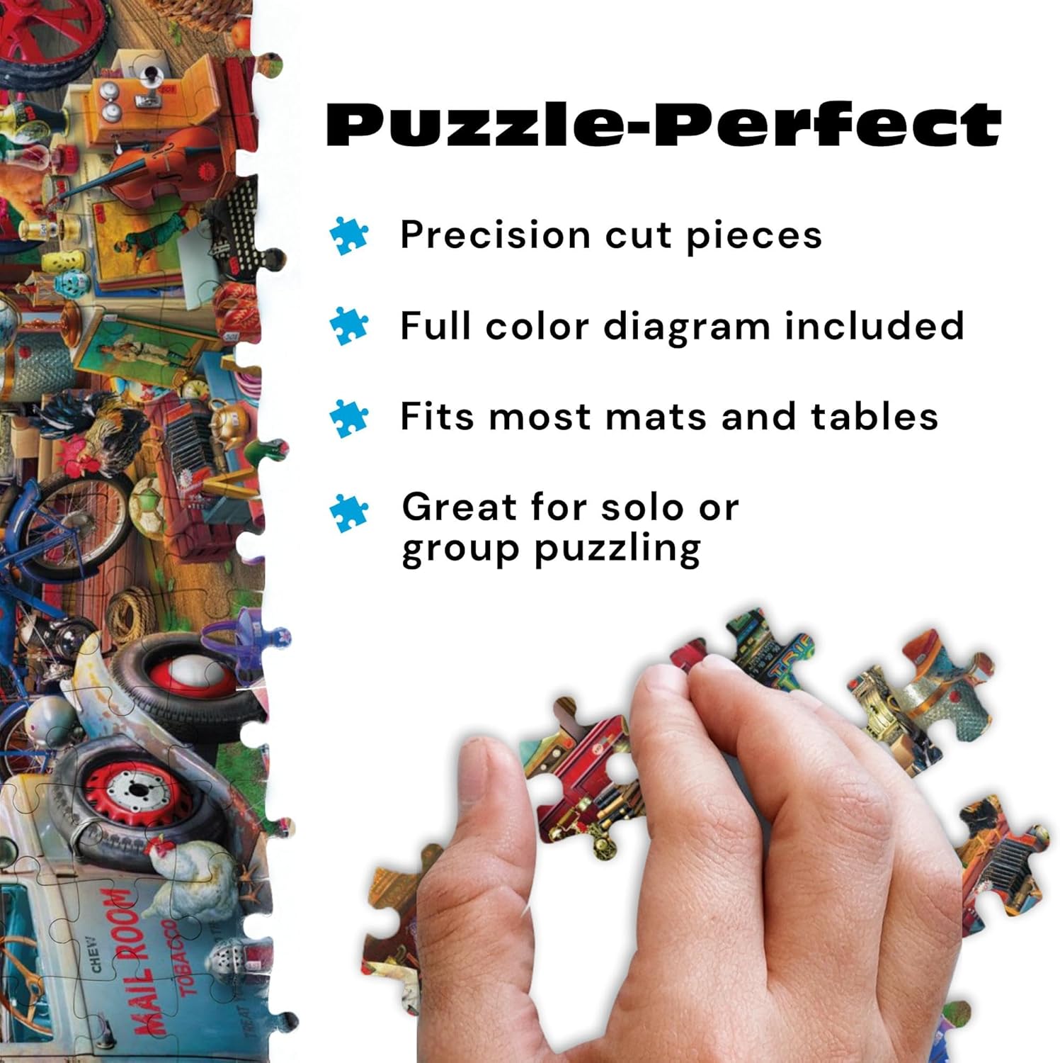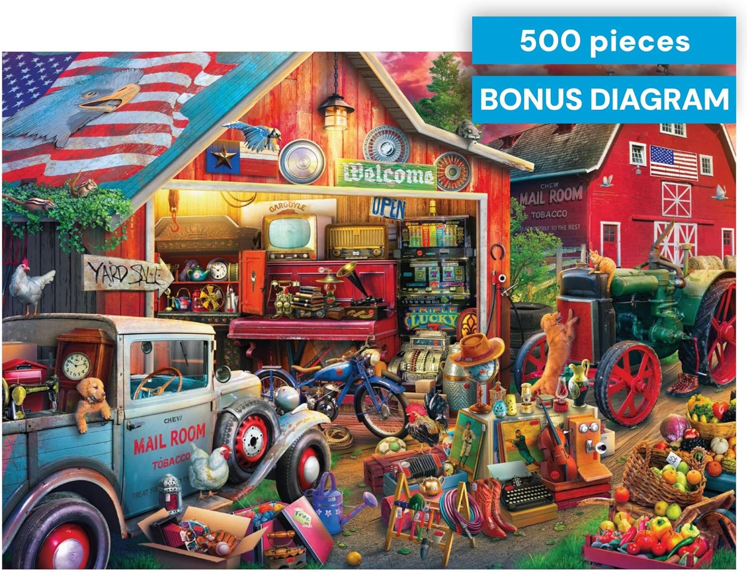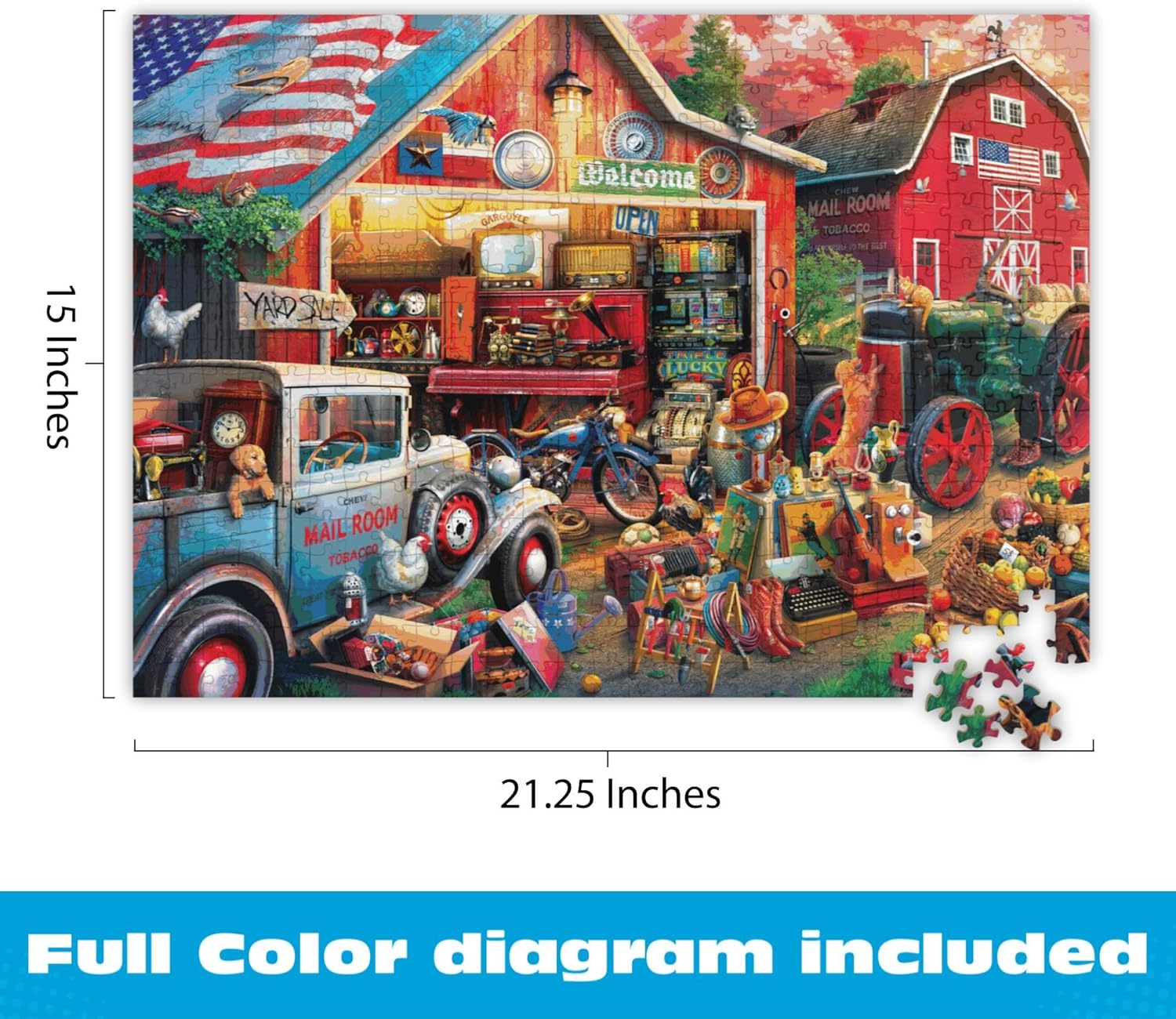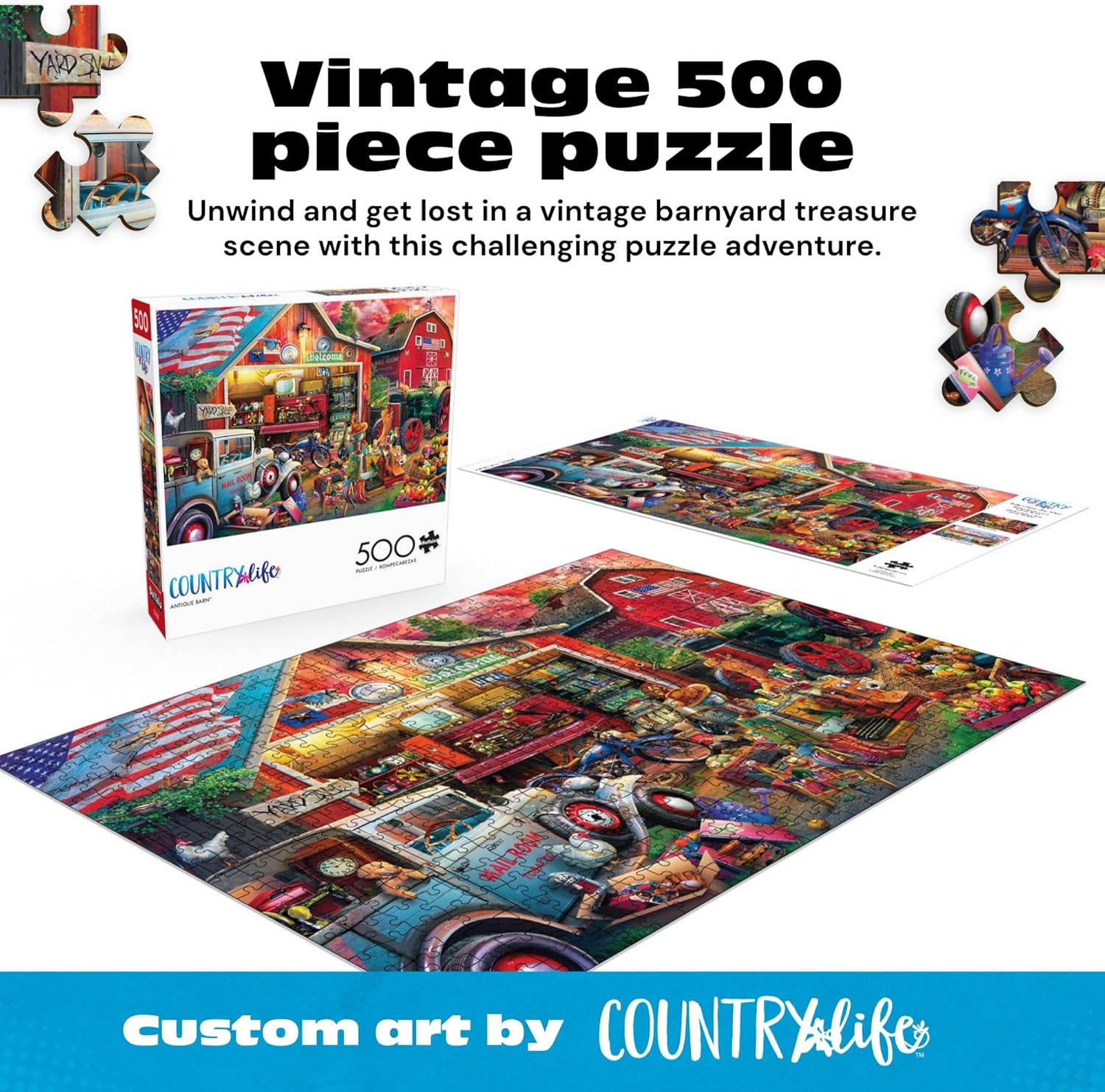 NOSTALGIC COUNTRY PUZZLING EXPERIENCE: Enjoy a warm, cozy puzzling escape as you piece together a vintage barn filled with timeless treasures, roadside charm, and classic Americana details that make it a relaxing and rewarding journey.