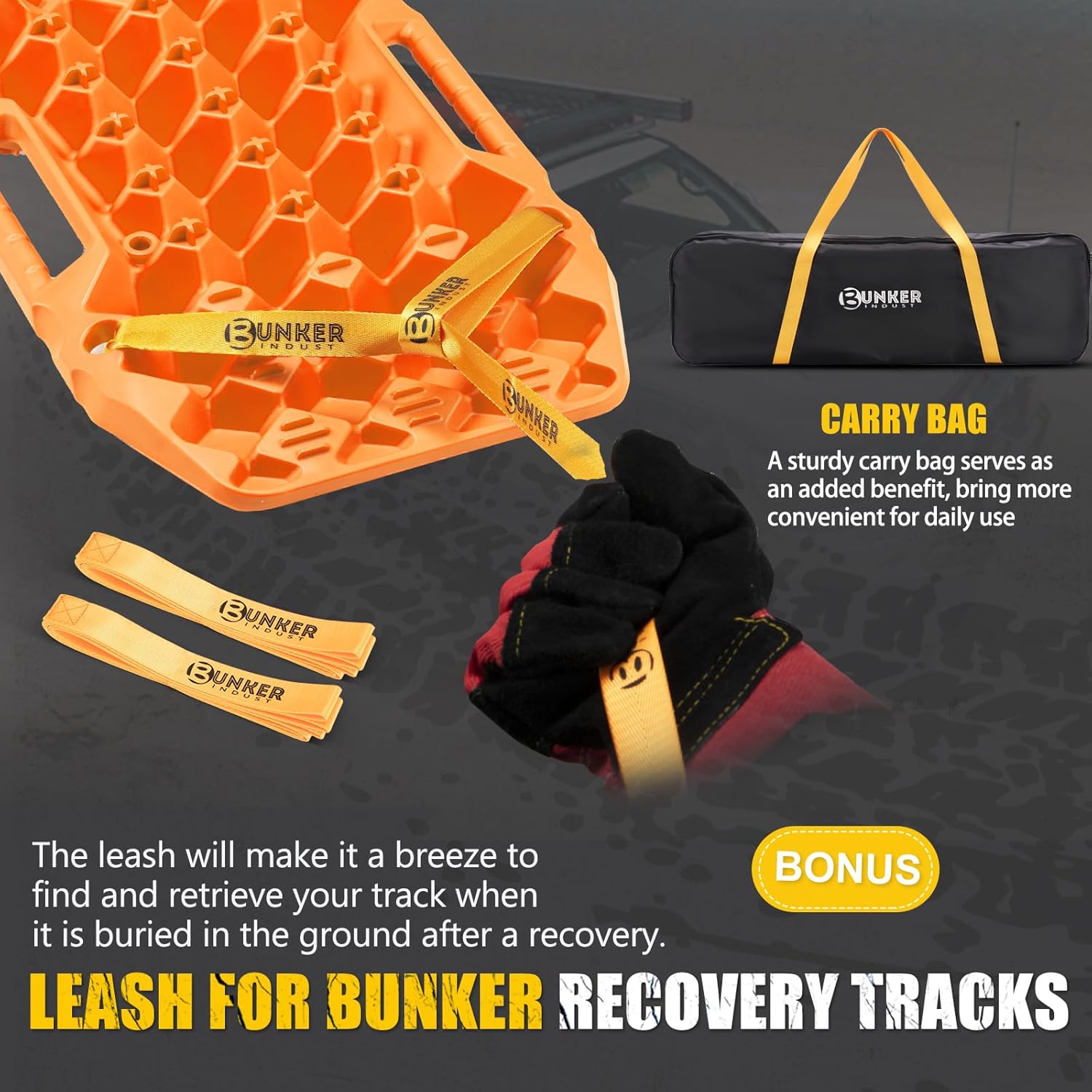 Bonus: A sturdy carry bag serves as an added benefit, bring more convenient for daily use.Nylon leash makes it a breeze to retrieve your truck traction mats when the recovery traction board is buried in the ground