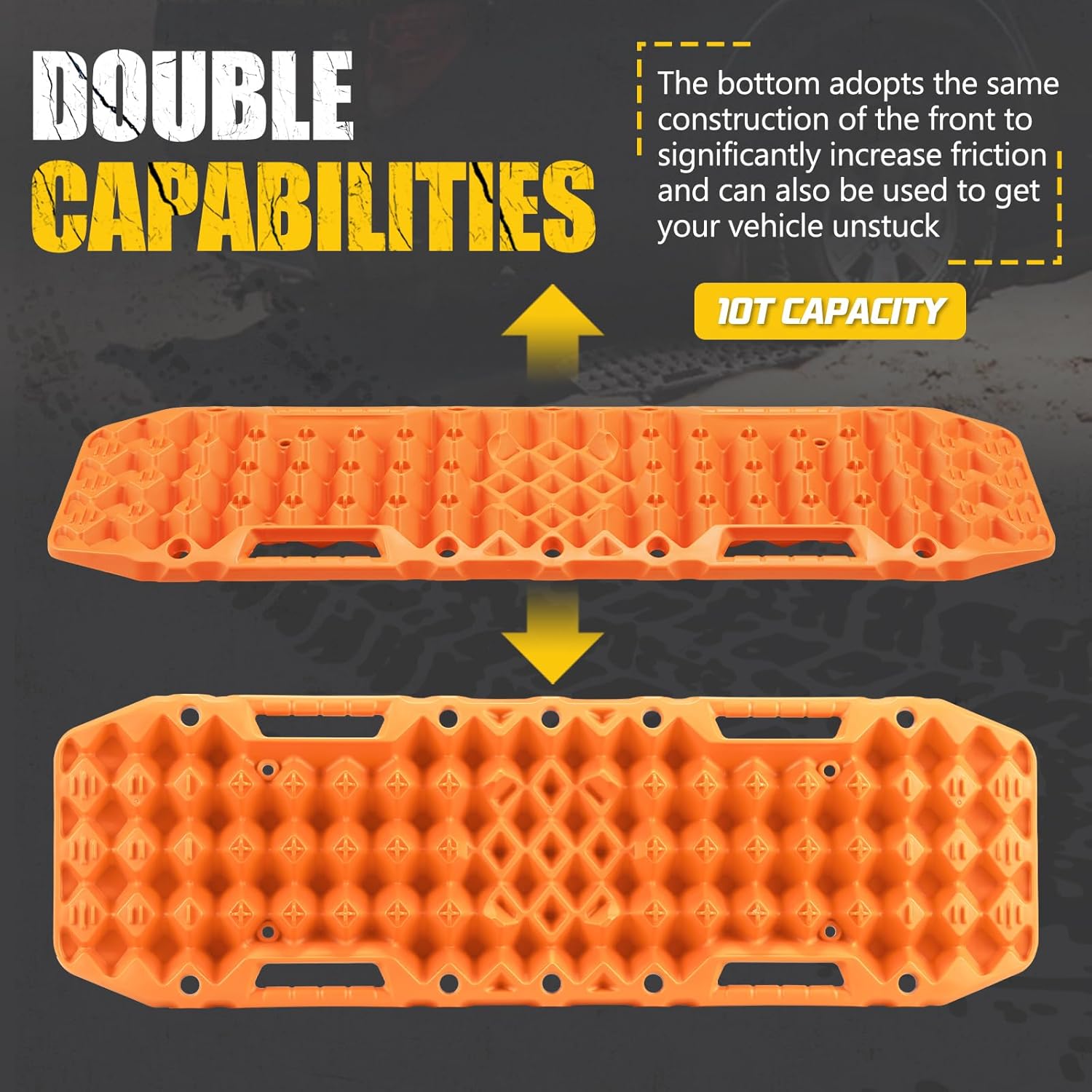 Double Capabilities: Abandoning traditional design, both sides of the traction recovery board adopt the same diamond array construction to significantly increase friction and can also be used to get your vehicle unstuck.