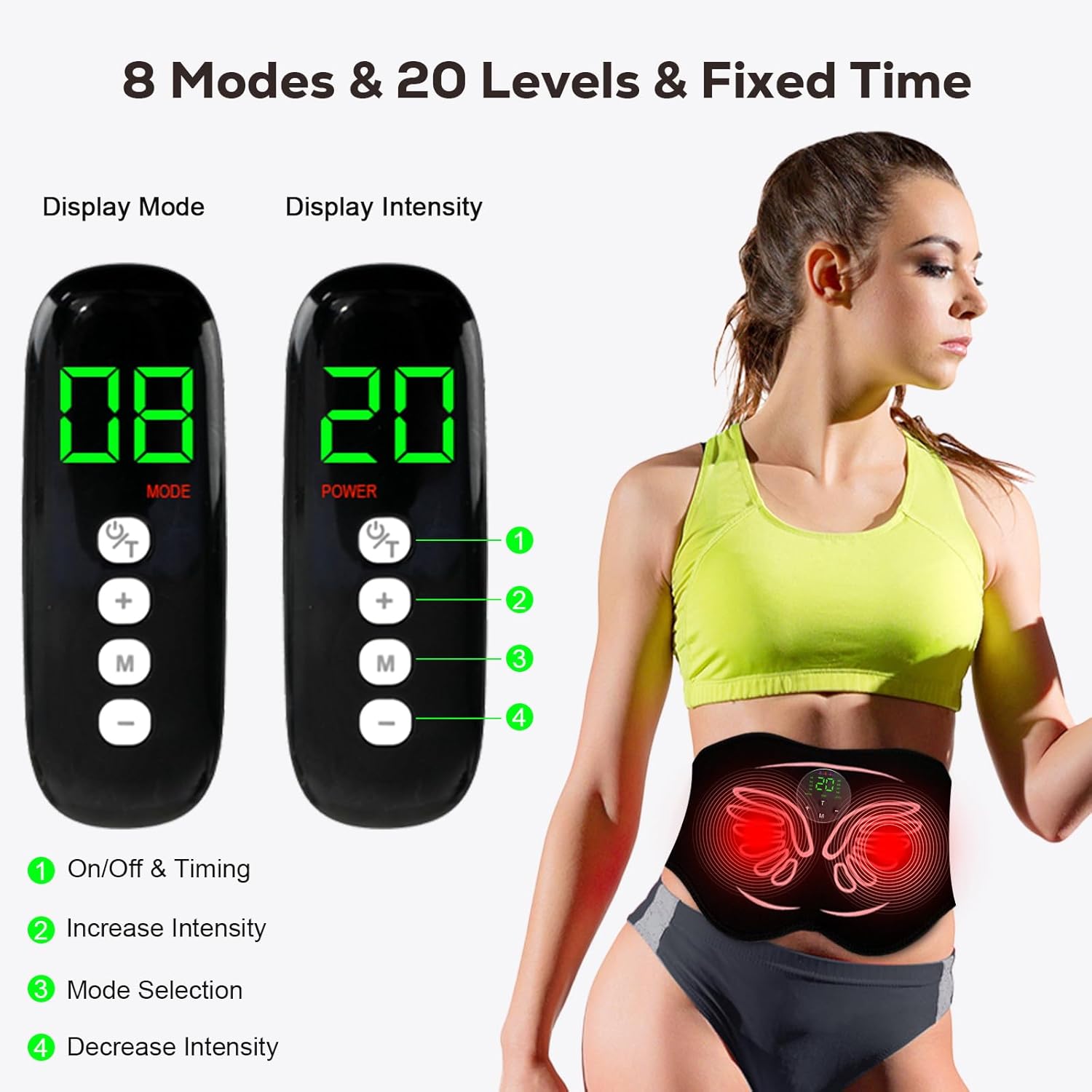Hands-Free Remote & Timed Safety System: With a sleek LCD remote control, easily adjust mode, time, and intensity without bending. Auto shut-off after 20/30/40/50/60 minutes keeps every EMS muscle stimulator session safe and controlled, perfect for multitaskers.