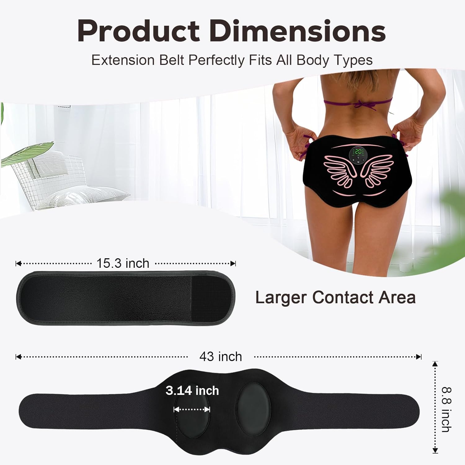 Multifunctional Belt for Full Body Shaping: Not just a butt lifting machine – this EMS belt tones thighs, abs, hips, and arms too. With an included extension strap, the booty trainer belt fits all body types, supporting post-pregnancy shaping, lazy workouts, or targeted fitness.