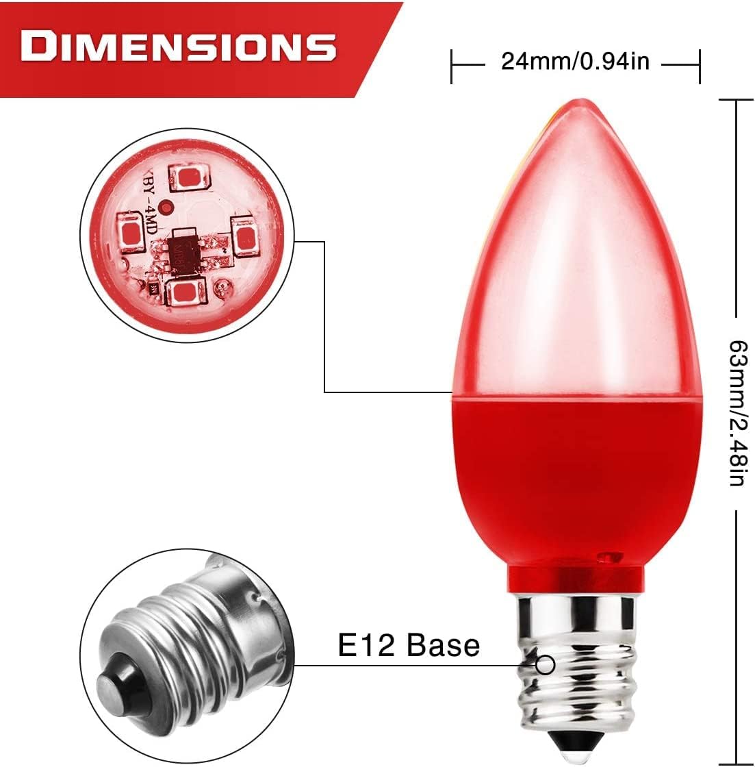 Wide application: These mini Red colLED Bulbs are suitable for bedroom lights, chandeliers, Christmas lighting, signs, appliances, wall nightlight, salt lamps and more c7 candelabra base.
