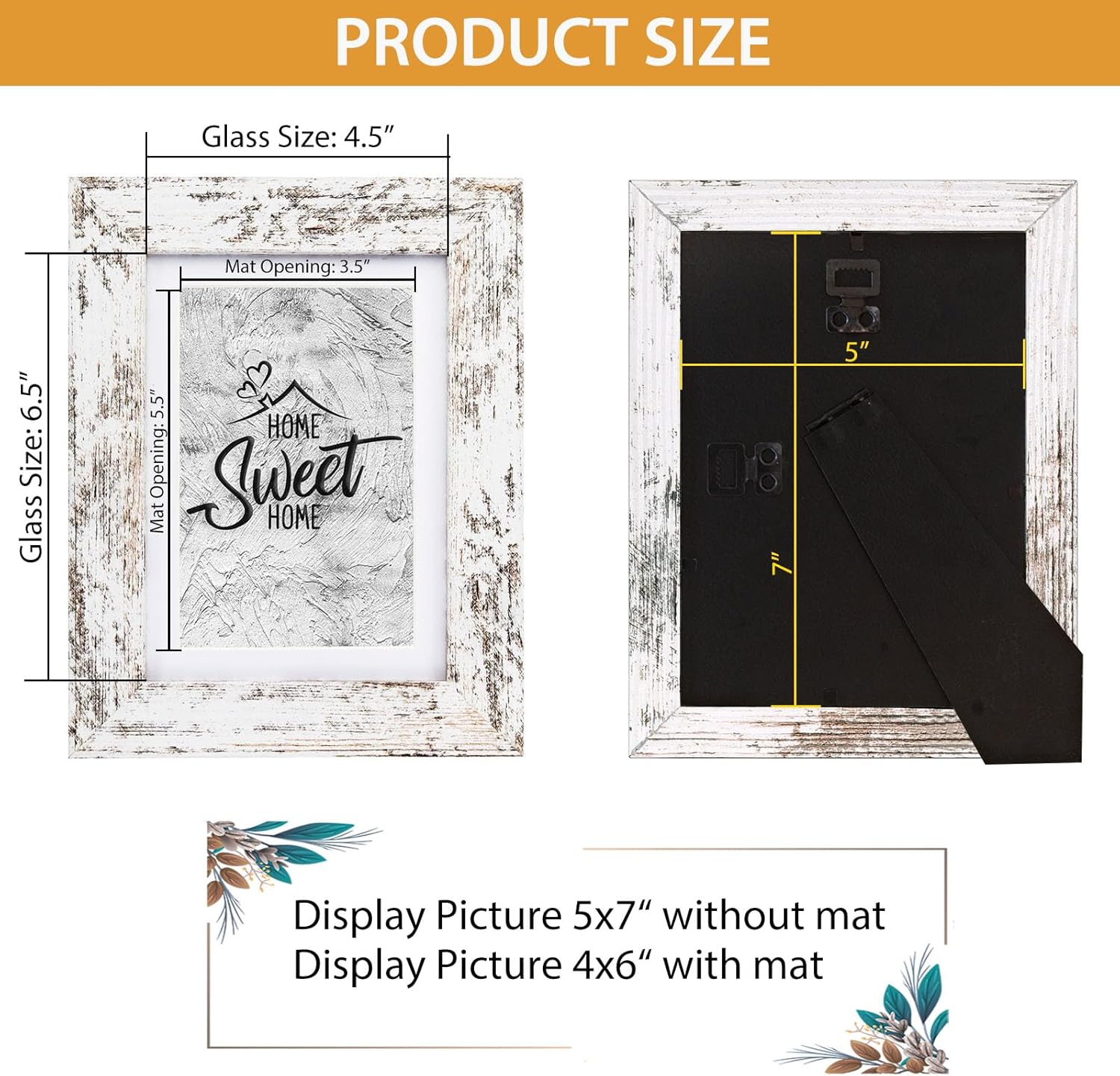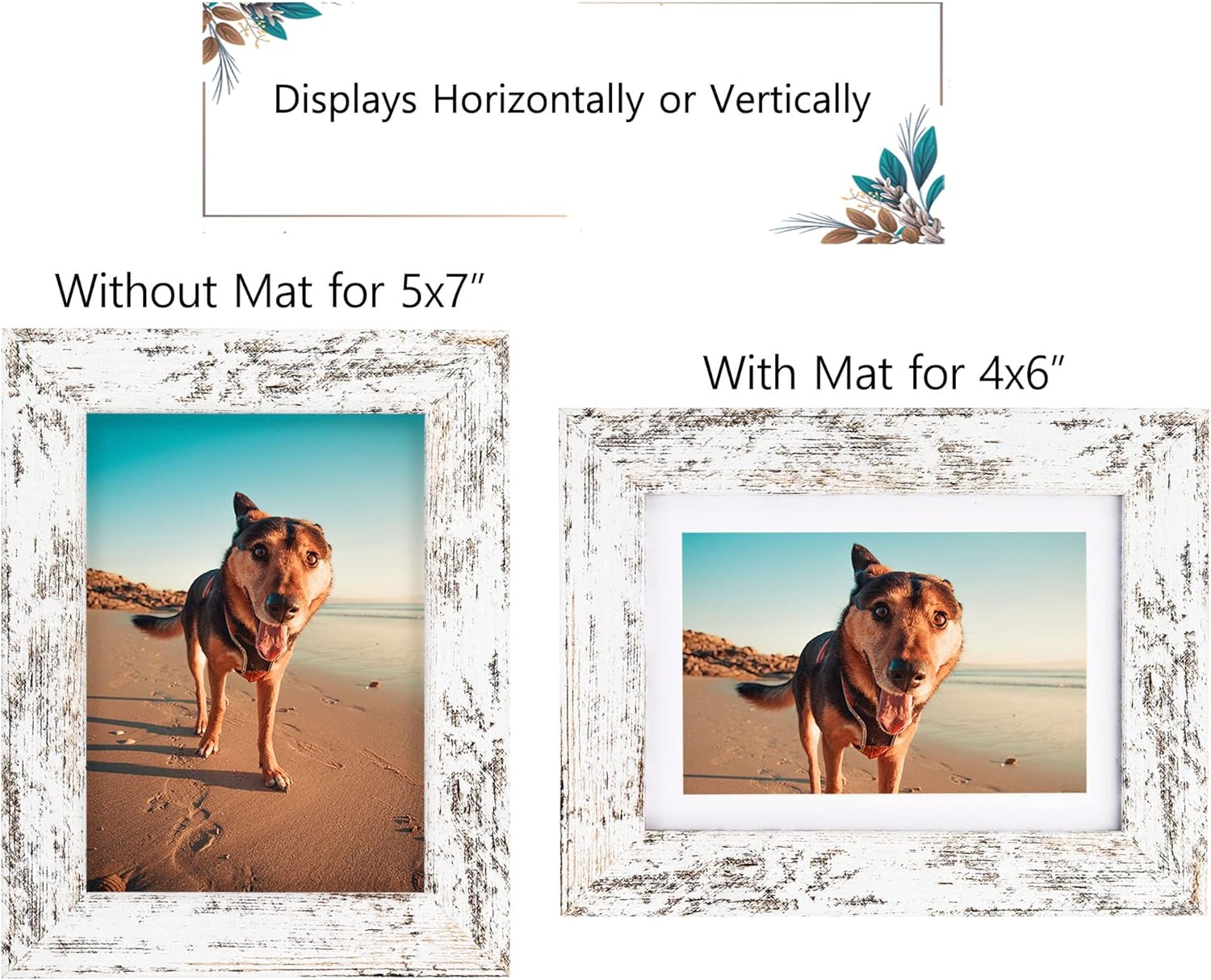 Beveled Mat: This 5×7 frame fit 4×6 picture with mat or 5 x 7 inches picture/photo/print without mat. Mat opening was designed 0.5 inches (3.5″x5.5 “) smaller than photo itself in order to hold it steadily